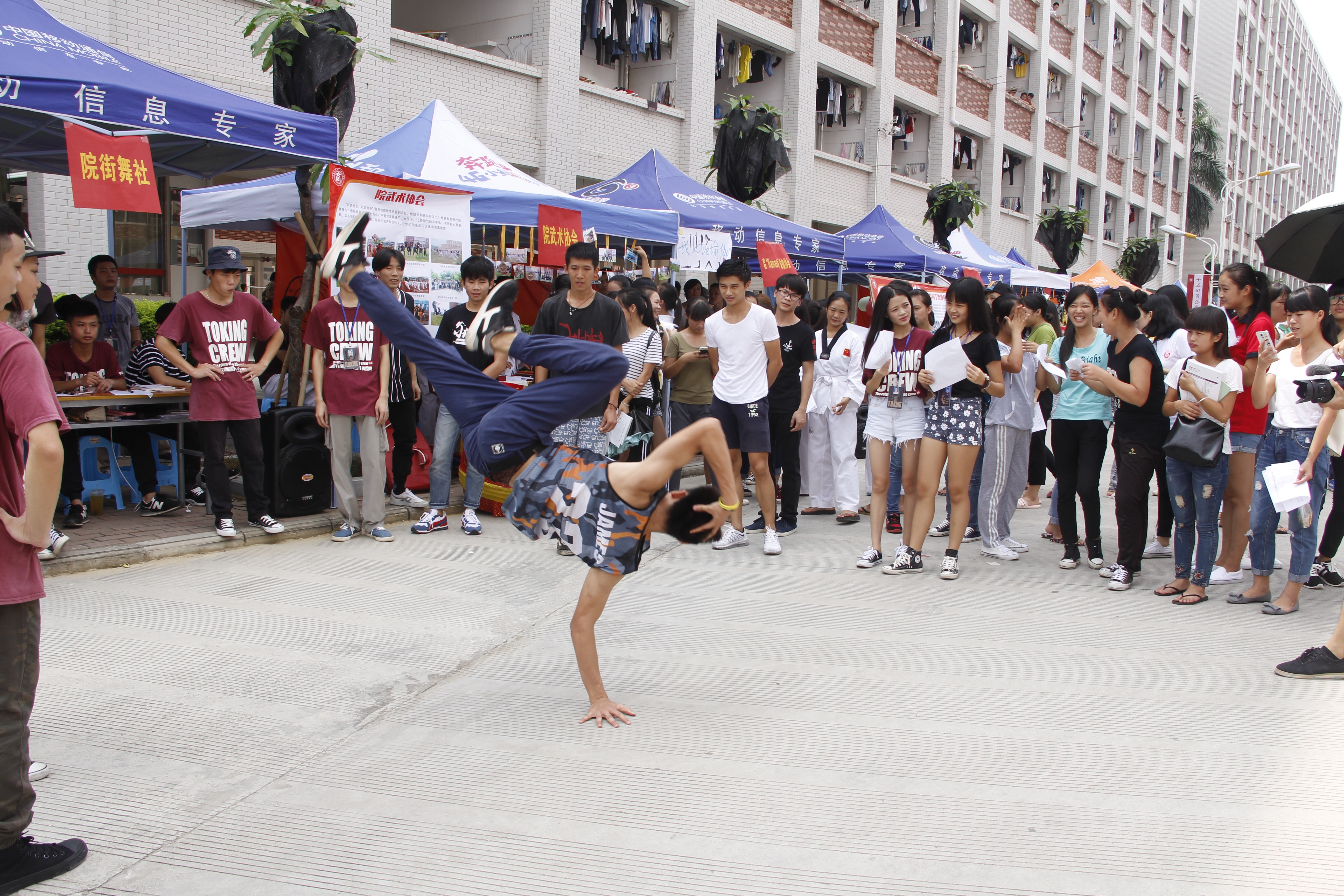 2015年9月28日12時(shí),學(xué)院和各系共33個(gè)協(xié)會(huì)的招新活動(dòng)在校園內(nèi)展開。為了能吸引到更多新生的關(guān)注和加入,各個(gè)協(xié)會(huì)更是做足噱頭:歌舞、COSPLAY、花式輪滑,在精彩的文藝表演中,招新活動(dòng)熱鬧開幕。招新現(xiàn)場(chǎng)人山人海,熱鬧非凡,在校園里形成一道靚麗的風(fēng)景線。