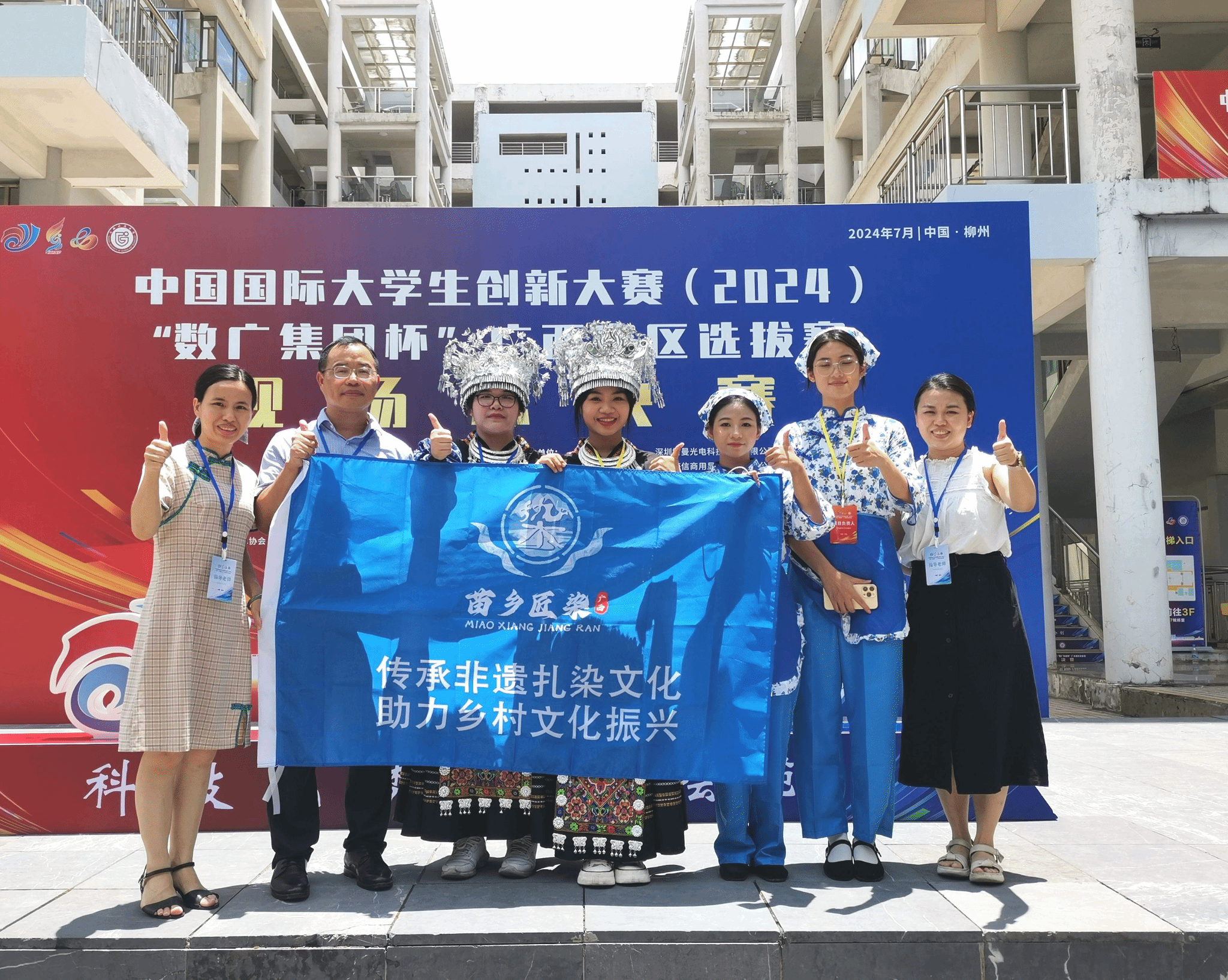 7月29-30日,中國國際大學(xué)生創(chuàng)新大賽(2024)“數(shù)廣集團(tuán)杯”廣西賽區(qū)選拔賽現(xiàn)場總決賽在柳州舉行。我校有7個項目入圍現(xiàn)場總決賽,經(jīng)過激烈的角逐,我?!睹玎l(xiāng)匠染:廣西非遺扎染產(chǎn)業(yè)的活態(tài)傳承與創(chuàng)新》項目和《環(huán)保小“虻”寵—利用黑水虻處理廚余垃圾和畜禽糞便的踐行者》項目斬獲金獎,并晉級金獎排位賽。