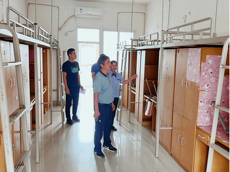 (校長劉進(jìn)、副校長闕勇平帶隊(duì)在中堯校區(qū)學(xué)生公寓進(jìn)行督查)