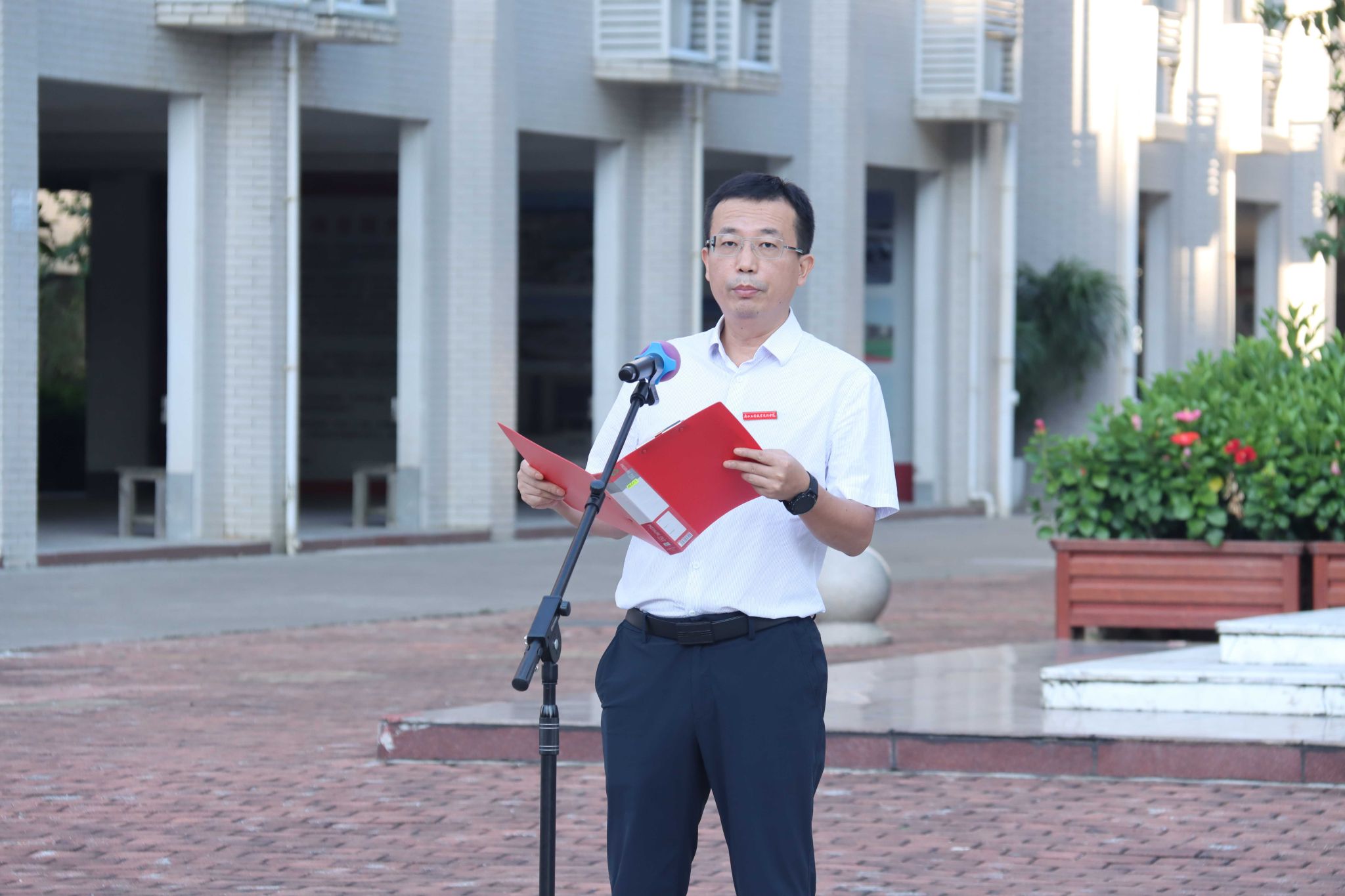 接著,教師代表上臺發(fā)言,勉勵青年學(xué)子面對新學(xué)期的新挑戰(zhàn)要明德修身、格物致知,在追求知識的廣博與精深的同時,自覺錘煉品德修為;要明確目標(biāo)、合理規(guī)劃,有條不紊推進各項目標(biāo);要勤奮學(xué)習(xí)、追求卓越,充分利用學(xué)校提供的資源,不斷提升自己的專業(yè)素養(yǎng)和綜合能力;要積極參與、全面發(fā)展,投身于各類實踐活動和社會服務(wù)中,促進個人全面發(fā)展。
