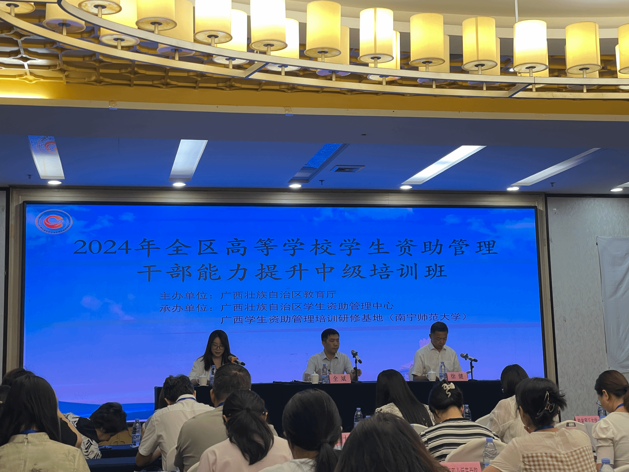 9月12日至14日,由廣西壯族自治區(qū)教育廳主辦、廣西壯族自治區(qū)學(xué)生資助管理中心和廣西學(xué)生資助管理培訓(xùn)研修基地(南寧師范大學(xué))承辦的2024年全區(qū)高等學(xué)校學(xué)生資助管理干部能力提升中級(jí)培訓(xùn)班在桂林順利舉辦。我校在培訓(xùn)班上作資助工作經(jīng)驗(yàn)分享。