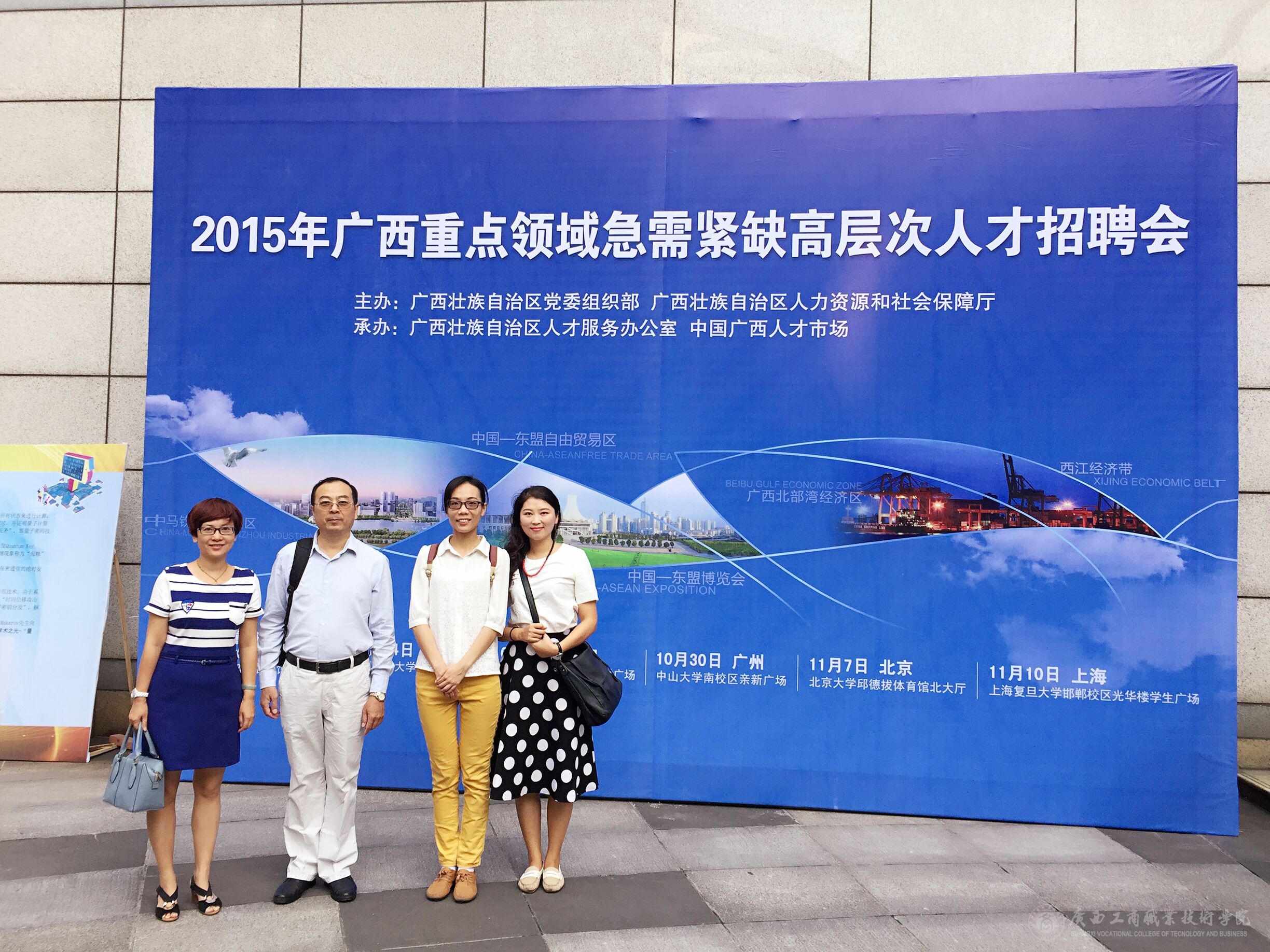 10月21日至25日期間,學(xué)院黨委副書記蒙啟成率隊趕赴重慶、武漢兩地參加2015年廣西重點領(lǐng)域急需緊缺高層次人才招聘會。本次招聘會由廣西區(qū)人力資源和社會保障廳主辦,邀請了百余所高校及企業(yè)參加。