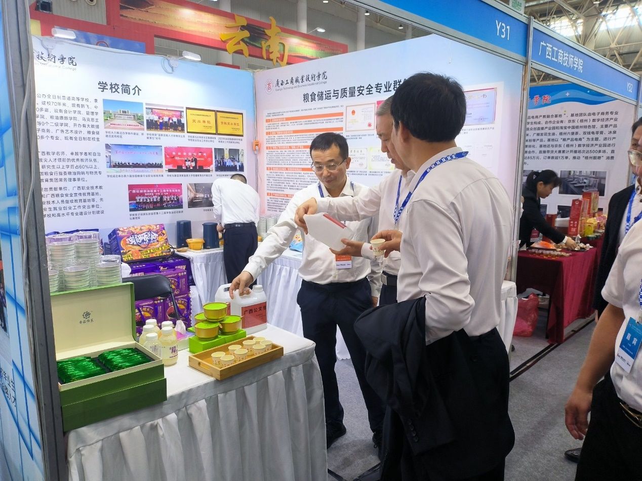在涉糧院校人才成果展中,我校展位成為了交易大會(huì)的熱議焦點(diǎn)。展區(qū)以“創(chuàng)新驅(qū)動(dòng),服務(wù)糧食安全”為主題,全面展示了我校在糧食科學(xué)、農(nóng)業(yè)技術(shù)和食品安全等領(lǐng)域的研究成果。劉進(jìn)校長(zhǎng)在展位上接待了眾多來訪者,詳細(xì)介紹我校在校企合作、社會(huì)服務(wù)方面取得的成果,其中由我校李影球?qū)<夜ぷ魇抑贫ǖ摹额A(yù)制五色糯米飯加工技術(shù)規(guī)程》團(tuán)體標(biāo)準(zhǔn)獲得了廣西首屆高質(zhì)量團(tuán)體標(biāo)準(zhǔn)科學(xué)技術(shù)獎(jiǎng)。