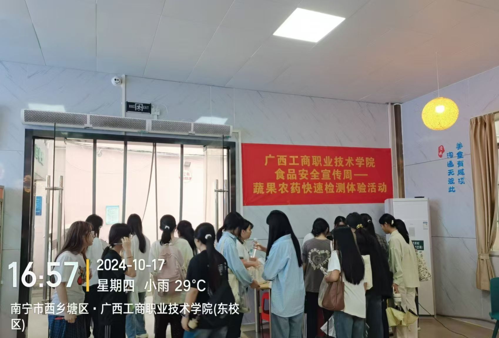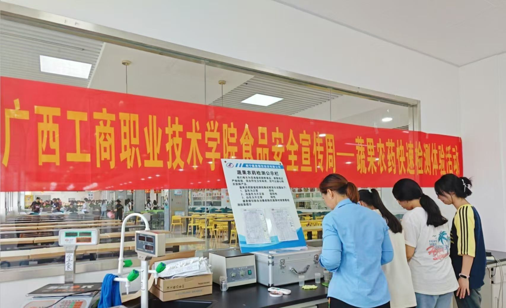 (武鳴校區(qū)食堂果蔬農(nóng)藥殘留快速檢測體驗活動現(xiàn)場)