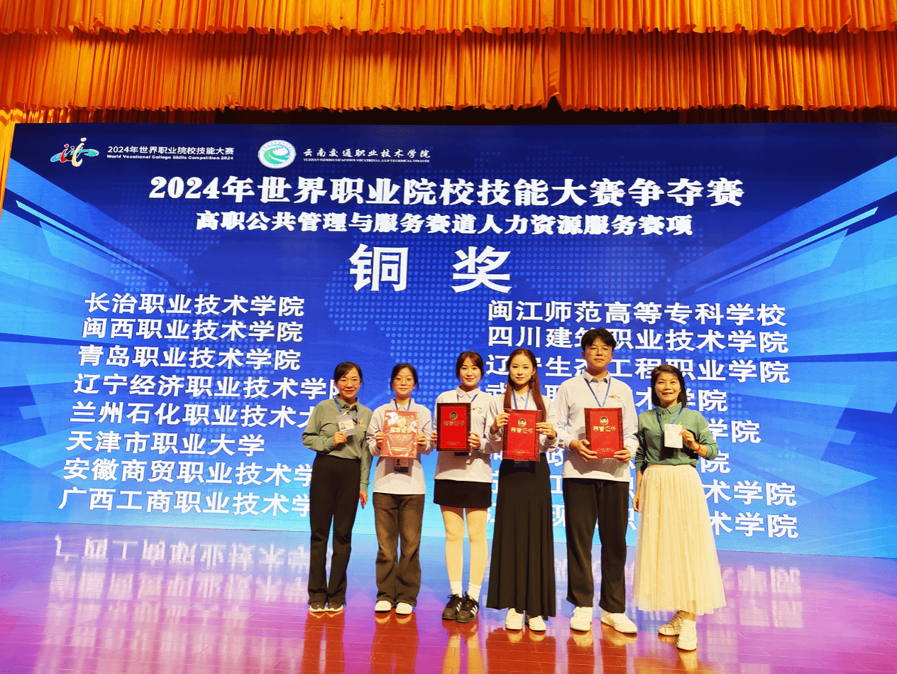 10月25日至27日,世界職業(yè)院校技能大賽爭(zhēng)奪賽公共管理與服務(wù)賽道人力資源服務(wù)賽項(xiàng)在云南交通職業(yè)技術(shù)學(xué)院舉行。賽項(xiàng)共有來自全國(guó)29個(gè)省、直轄市的58支參賽隊(duì)伍參加。經(jīng)過3天的激烈比拼,我校管理學(xué)院湯慧珍、李波、李芊、楊雨絲四位同學(xué)組成的競(jìng)賽團(tuán)隊(duì)獲得本次大賽的銅獎(jiǎng)。
