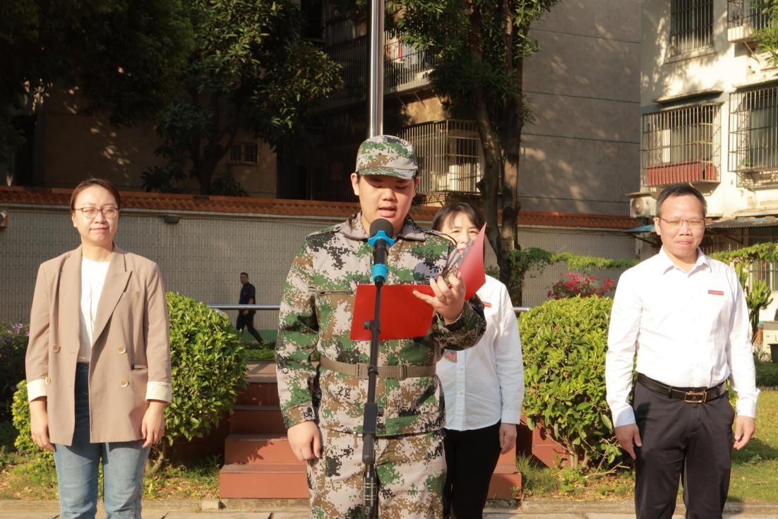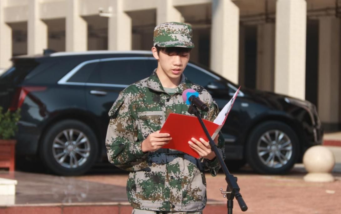 來自鵬飛校區(qū)信息與設(shè)計(jì)學(xué)院視覺2407班的學(xué)生胡家溪、中堯校區(qū)數(shù)會2403班的學(xué)生唐嘉源作為參訓(xùn)學(xué)生代表發(fā)言。他們表示,軍訓(xùn)是一次自我挑戰(zhàn)與成長的旅程,在接下來的訓(xùn)練過程中,將做到聽從指揮,磨煉意志,增強(qiáng)技能,團(tuán)結(jié)一致,力爭蛻變?yōu)橛啦环?、永不言敗的鋼鐵戰(zhàn)士,以更加堅(jiān)定的信念,勇敢面對未來生活的挑戰(zhàn),努力實(shí)現(xiàn)人生價(jià)值。