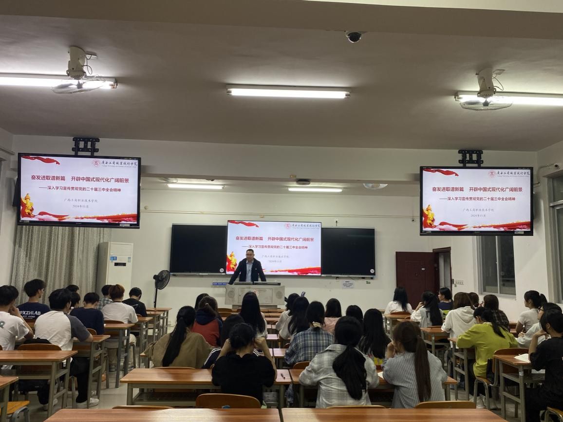 11月5日,學(xué)校副校長陳寧春在鵬飛校區(qū)2421教室為計應(yīng)2401班同學(xué)講授題為《奮發(fā)進取譜新篇 開辟中國式現(xiàn)代化廣闊前景——深入學(xué)習(xí)貫徹黨的二十屆三中全會精神》主題思政課。