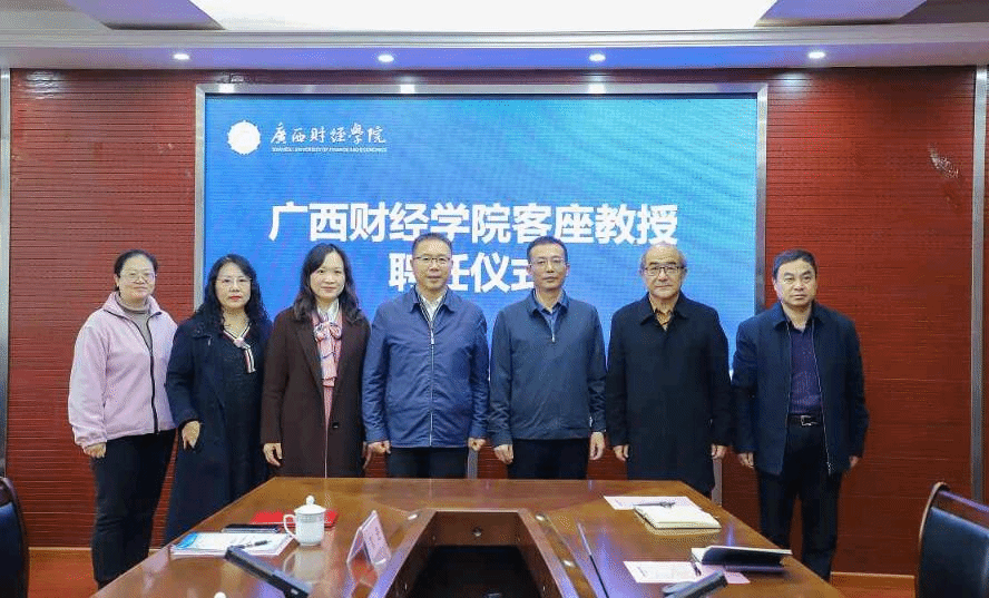 12月11日,廣西財(cái)經(jīng)學(xué)院在財(cái)政與公共管理學(xué)院會(huì)議室舉行客座教授受聘儀式,正式聘請(qǐng)我校黨委副書(shū)記、校長(zhǎng)、自治區(qū)人大常委會(huì)委員、財(cái)經(jīng)委委員劉進(jìn)教授擔(dān)任廣西財(cái)經(jīng)學(xué)院客座教授。廣西財(cái)經(jīng)學(xué)院校長(zhǎng)夏飛出席儀式,并頒發(fā)證書(shū)。財(cái)政與公共管理學(xué)院全體班子成員出席聘任儀式。儀式由財(cái)政與公共管理學(xué)院院長(zhǎng)蒙強(qiáng)主持。