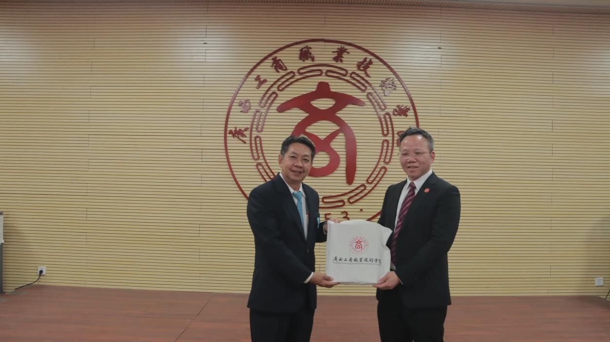 座談會(huì)上,闕勇平副校長(zhǎng)代表學(xué)校向DR.PHOOM SRISOOK一行的到來表示熱烈歡迎,詳細(xì)介紹了學(xué)校的辦學(xué)歷史、專業(yè)建設(shè)和辦學(xué)成就等情況。他表示,近年來我校正通過一系列對(duì)外合作交流的管理制度、與大型國(guó)企合作建設(shè)面向東盟的業(yè)務(wù)、開展專業(yè)國(guó)際認(rèn)證工作、開發(fā)國(guó)際化課程資源等措施持續(xù)推進(jìn)教育對(duì)外開放,不斷提升國(guó)際化辦學(xué)水平。希望兩校能夠搭建國(guó)際職教合作及文化學(xué)術(shù)交流平臺(tái),攜手發(fā)展、合作共贏,加快我校教育教學(xué)與國(guó)際接軌進(jìn)程。