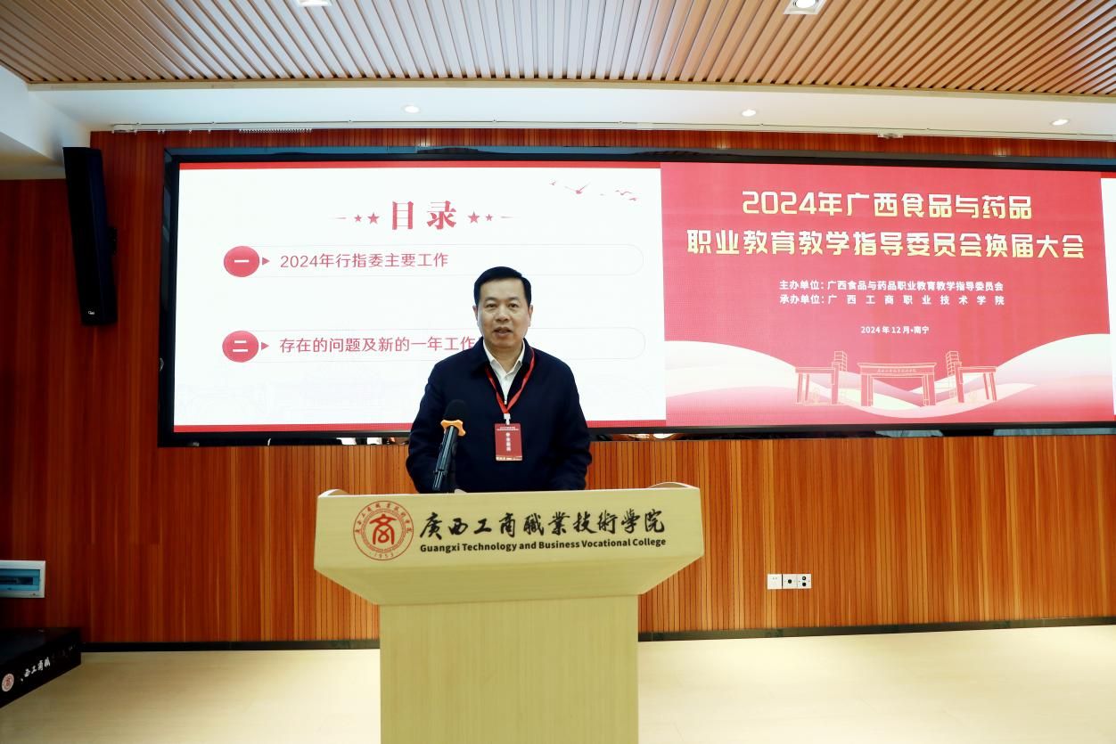 學(xué)校黨委書(shū)記、廣西食品與藥品行指委副主任委員李維作廣西食品藥品專(zhuān)業(yè)教育教學(xué)指導(dǎo)委員會(huì)2024年工作總結(jié)及2025年工作計(jì)劃。他表示,在自治區(qū)教育廳、自治區(qū)工信廳的領(lǐng)導(dǎo)下,廣西食品與藥品行指委統(tǒng)籌各成員單位積極配合,今年圓滿(mǎn)完成了行指委工作計(jì)劃和行動(dòng)計(jì)劃提出的階段性任務(wù),教育教學(xué)質(zhì)量顯著提升。李維指出,新一屆行指委將緊緊圍繞國(guó)家深化教育教學(xué)改革決策部署,切實(shí)推動(dòng)食品藥品職業(yè)教育取得新成效。一是進(jìn)一步加強(qiáng)工作信息報(bào)告機(jī)制,完善行指委委員的工作職責(zé),促進(jìn)各單位建設(shè)經(jīng)驗(yàn)交流。二是要做好頂層設(shè)計(jì),打造高水平專(zhuān)業(yè)群;加強(qiáng)校企合作,建設(shè)一流核心課程;完善管理機(jī)制,校企雙元開(kāi)發(fā)新形態(tài)教材;進(jìn)培養(yǎng)結(jié)合,建設(shè)高水平雙師隊(duì)伍;深化產(chǎn)教融合,打造行業(yè)產(chǎn)教融合共同體;推動(dòng)職教出海,為“一帶一路”建設(shè)獻(xiàn)“糧”策。