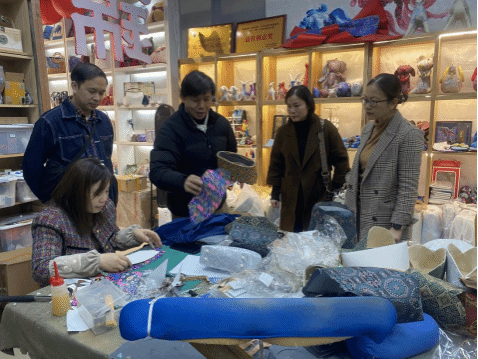 (雙方在壯錦手工基地現(xiàn)場洽談交流)