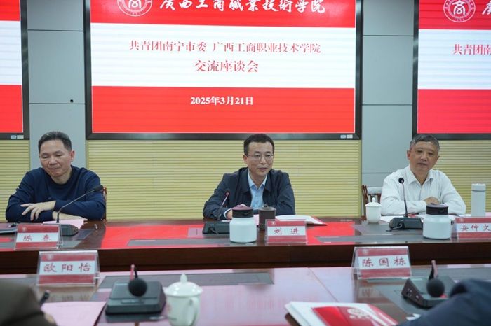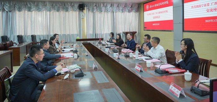座談會(huì)上,劉進(jìn)校長代表學(xué)校對(duì)共青團(tuán)南寧市委一行表示熱烈歡迎,并詳細(xì)介紹了學(xué)校辦學(xué)歷史與育人特色。他表示,學(xué)校將以此次合作為契機(jī),與共青團(tuán)南寧市委共筑“紅色育人”新高地、共建“政-企-校”聯(lián)動(dòng)機(jī)制和共育青年成長“生態(tài)圈”,將糧食安全、人工智能等特色領(lǐng)域融入人才培養(yǎng),為首府經(jīng)濟(jì)社會(huì)發(fā)展輸送更多高素質(zhì)青年人才。