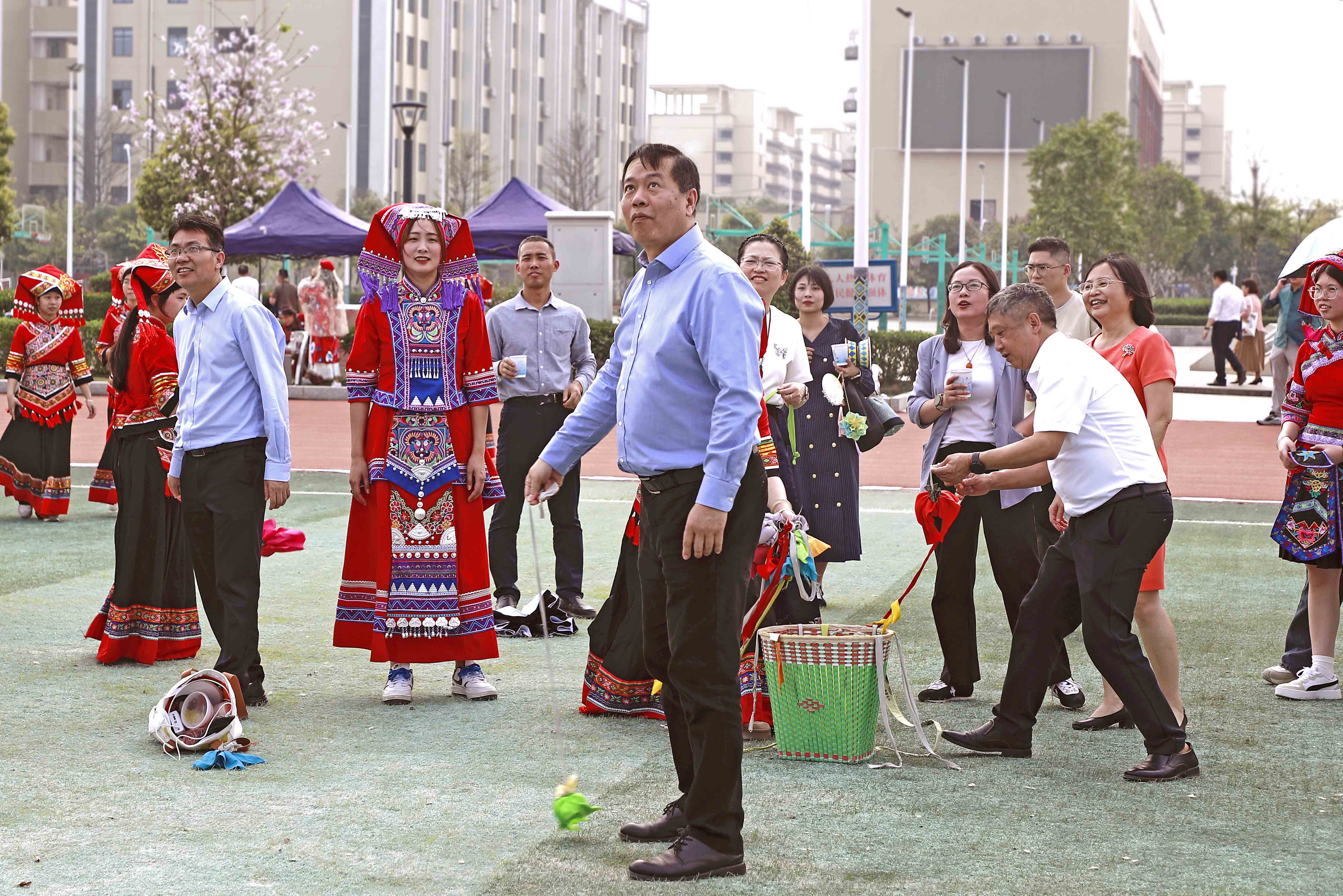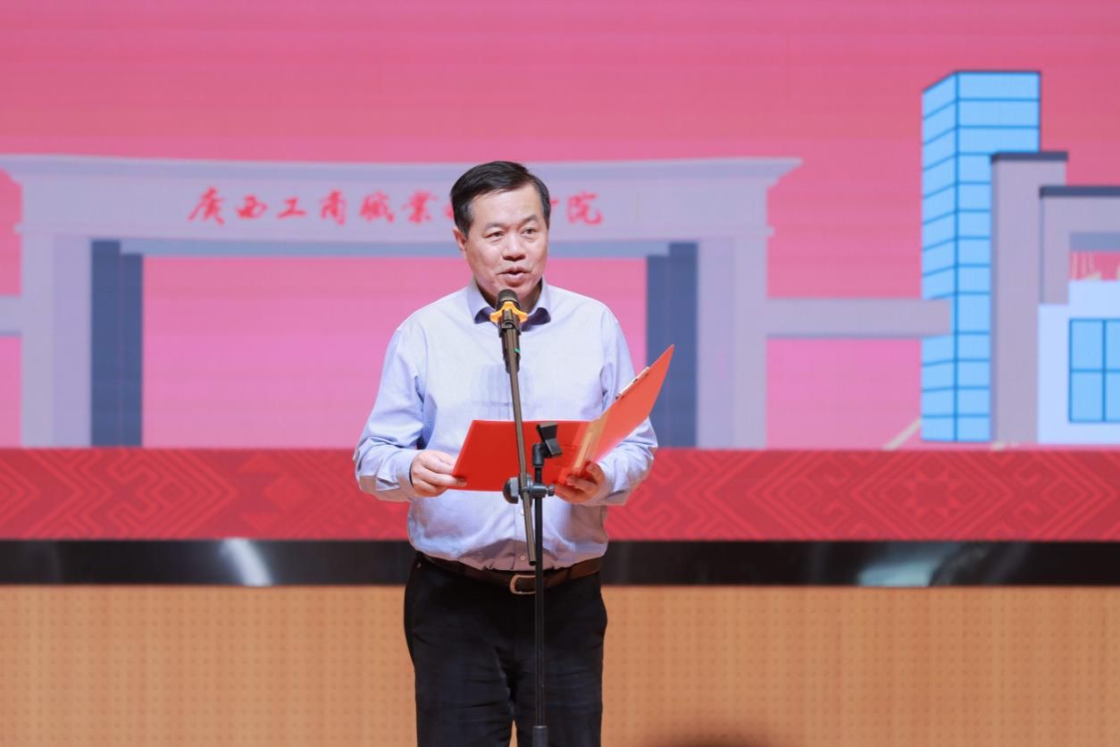 李維書記在開幕式現(xiàn)場(chǎng)致辭并宣布活動(dòng)正式開幕。他表示,一年一度的“廣西三月三”民族團(tuán)結(jié)進(jìn)步教育活動(dòng),是學(xué)校深入開展鑄牢中華民族共同體意識(shí)教育的特色平臺(tái),也是學(xué)校深耕文化育人沃土、厚植愛國(guó)主義情懷,構(gòu)建立德樹人新生態(tài)新格局的重要組成部分。長(zhǎng)期以來,學(xué)校黨委圍繞鑄牢中華民族共同體意識(shí)這條主線,將鑄牢中華民族共同體意識(shí)融入辦學(xué)治校、教書育人全過程各方面,形成了“機(jī)制上優(yōu)化、教育上深化、宣傳上強(qiáng)化、氛圍上融化”的民族團(tuán)結(jié)進(jìn)步創(chuàng)建工作格局。廣大師生積極擔(dān)負(fù)起新時(shí)代民族團(tuán)結(jié)進(jìn)步事業(yè)實(shí)踐者、推動(dòng)者和守護(hù)者的責(zé)任。他特別提到,我校學(xué)生創(chuàng)作的以少數(shù)民族與“非遺”傳承為主題的作品,獲得兩項(xiàng)國(guó)家級(jí)榮譽(yù)以及多項(xiàng)省部級(jí)榮譽(yù),充分展現(xiàn)了廣商院學(xué)子投身民族團(tuán)結(jié)進(jìn)步事業(yè)的卓越風(fēng)采。他號(hào)召各族師生積極參加系列活動(dòng),加強(qiáng)交流交往交融,進(jìn)一步鑄牢中華民族共同體意識(shí),增進(jìn)文化認(rèn)同和民族自豪感,為傳承中華優(yōu)秀傳統(tǒng)文化、推動(dòng)民族團(tuán)結(jié)進(jìn)步事業(yè)、建設(shè)鑄牢中華民族共同體意識(shí)示范區(qū)唱響廣商院之聲。