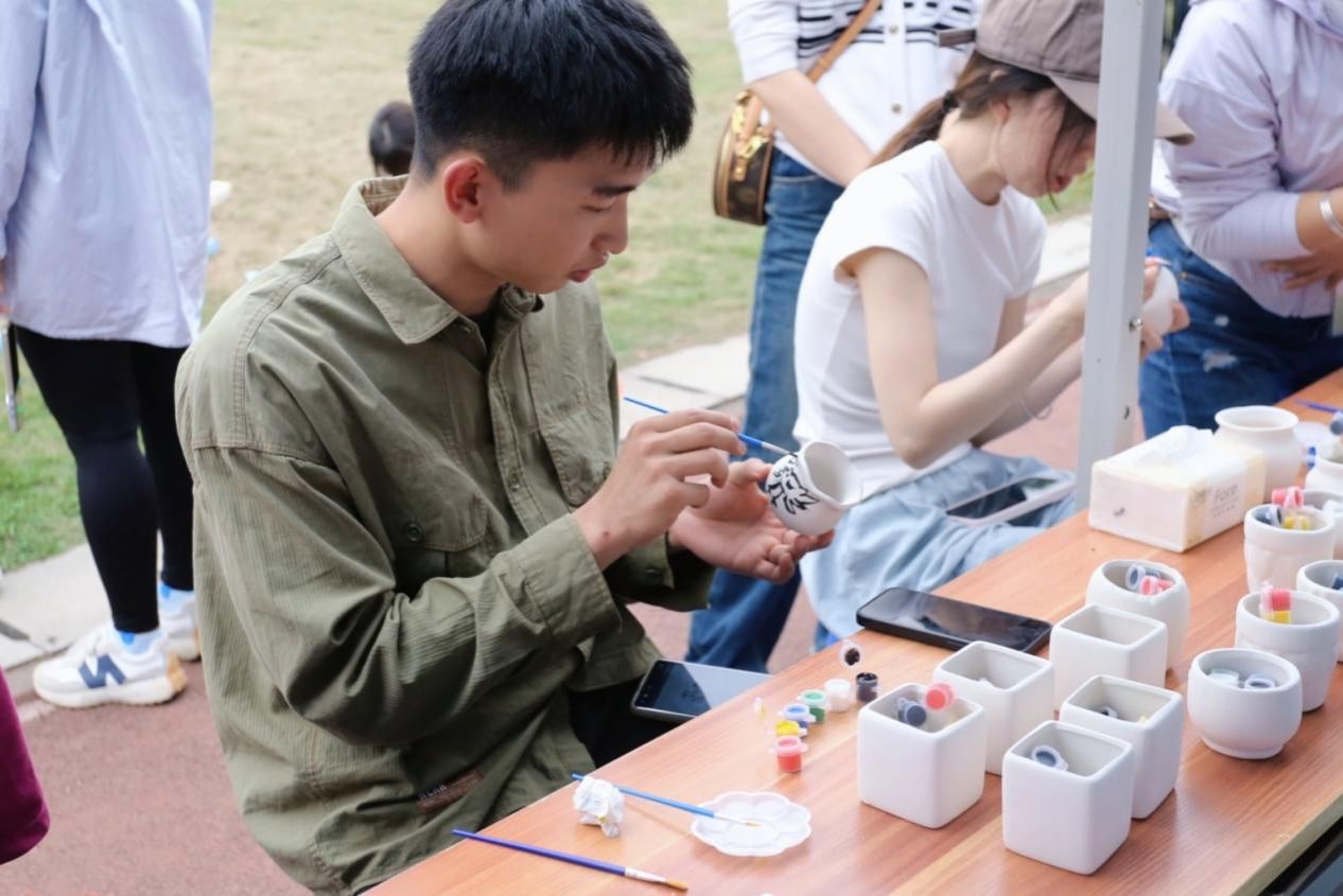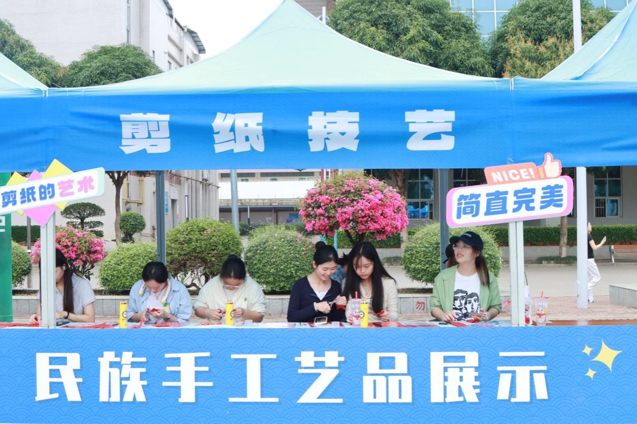 此外,開幕式還舉辦了民族文化體驗(yàn)活動(dòng),師生齊聚各校區(qū)田徑場(chǎng),參加這一場(chǎng)民族文化盛宴,積極參與到豐富多彩的民族文化體驗(yàn)活動(dòng)當(dāng)中。民族體育競(jìng)技、民族美食品嘗、手工藝品展示等環(huán)節(jié)吸引了眾多師生駐足。大家親手體驗(yàn)了蠶絲繞扇工藝、藍(lán)染、手工繡球制作、博白芒編等傳統(tǒng)技藝,欣賞了琳瑯滿目的民族手工藝品和學(xué)生創(chuàng)意作品。壯鄉(xiāng)特色美食更是讓師生們贊不絕口,現(xiàn)場(chǎng)氣氛熱烈。