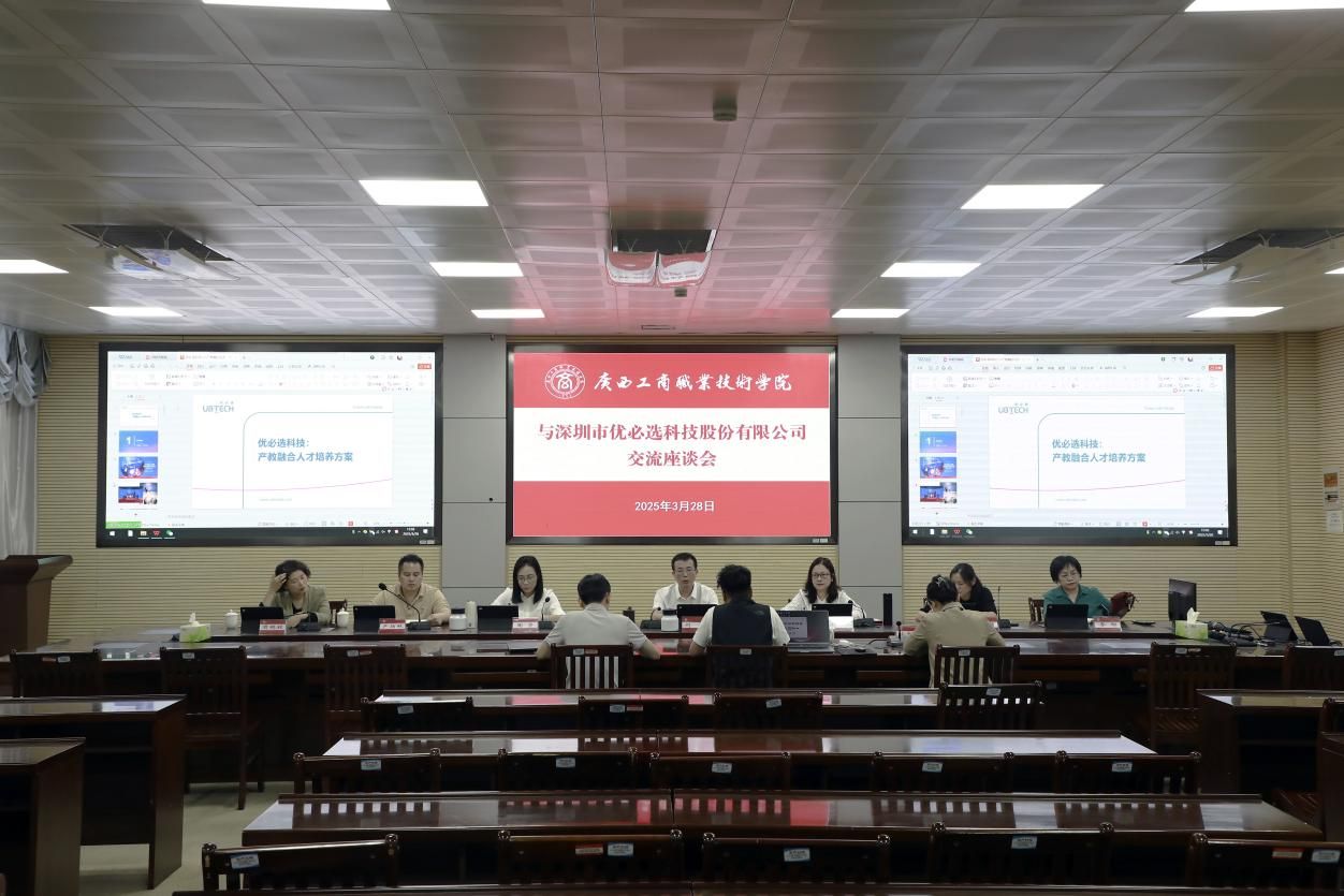 當天下午,學(xué)校與深圳市優(yōu)必選科技股份有限公司開展交流座談,雙方就人工智能人才培養(yǎng)、課程改革、職教出海等方面內(nèi)容進行交流探討。