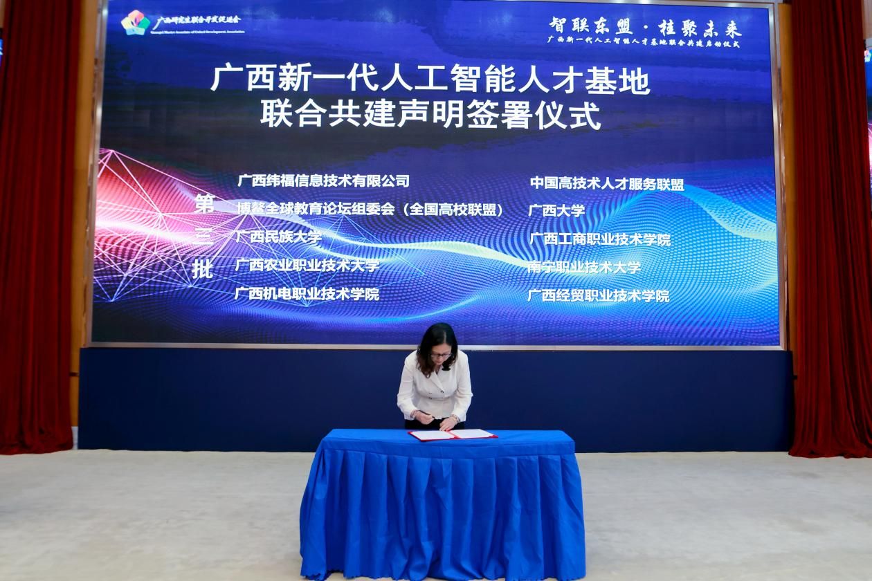 為深入貫徹落實國家《新一代人工智能發(fā)展規(guī)劃》及廣西壯族自治區(qū)“數(shù)字強(qiáng)區(qū)”戰(zhàn)略部署,建立產(chǎn)、科、教、人一體化數(shù)字產(chǎn)業(yè)人才培育體系,2025年4月28日,廣西新一代人工智能人才基地聯(lián)合共建啟動儀式在南寧高新區(qū)中關(guān)村創(chuàng)新示范基地舉行。來自全區(qū) 40 家政、產(chǎn)、學(xué)、研、金、用單位代表共同簽署《聯(lián)合共建聲明》,標(biāo)志著廣西在人工智能人才培養(yǎng)、技術(shù)創(chuàng)新與產(chǎn)業(yè)融合領(lǐng)域邁出關(guān)鍵性一步,正式開啟面向東盟的數(shù)字經(jīng)濟(jì)人才高地建設(shè)新征程。我校作為共建單位之一簽署《聯(lián)合共建聲明》,并協(xié)辦此次啟動儀式。