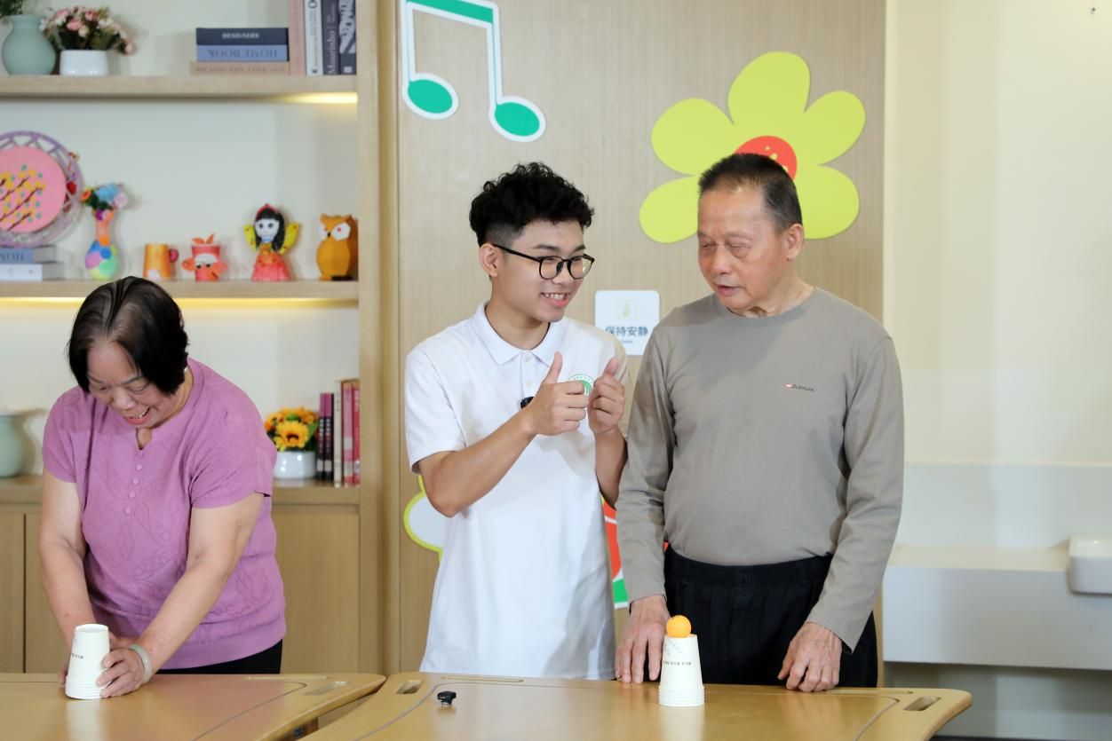 在錄制現(xiàn)場,我校智慧健康養(yǎng)老服務(wù)與管理專業(yè)的同學(xué)們與另外2所高職院校的同學(xué)組成康養(yǎng)小隊,分為活動策劃組和護理保健組,以真人秀形式進行節(jié)目錄制。活動策劃組的同學(xué)們帶領(lǐng)養(yǎng)老中心的老人們一起做游戲、唱歌、節(jié)目表演等,提高老人們的精神愉悅感;護理保健組的同學(xué)們?yōu)槔先藗冞M行推拿、復(fù)健等不同的醫(yī)療保健項目,提高老人們的身體健康水平。節(jié)目順利完成錄制,錄制過程十分活潑有趣,歡呼聲、笑聲縈繞在現(xiàn)場,充分展現(xiàn)了我校學(xué)子的專業(yè)能力。