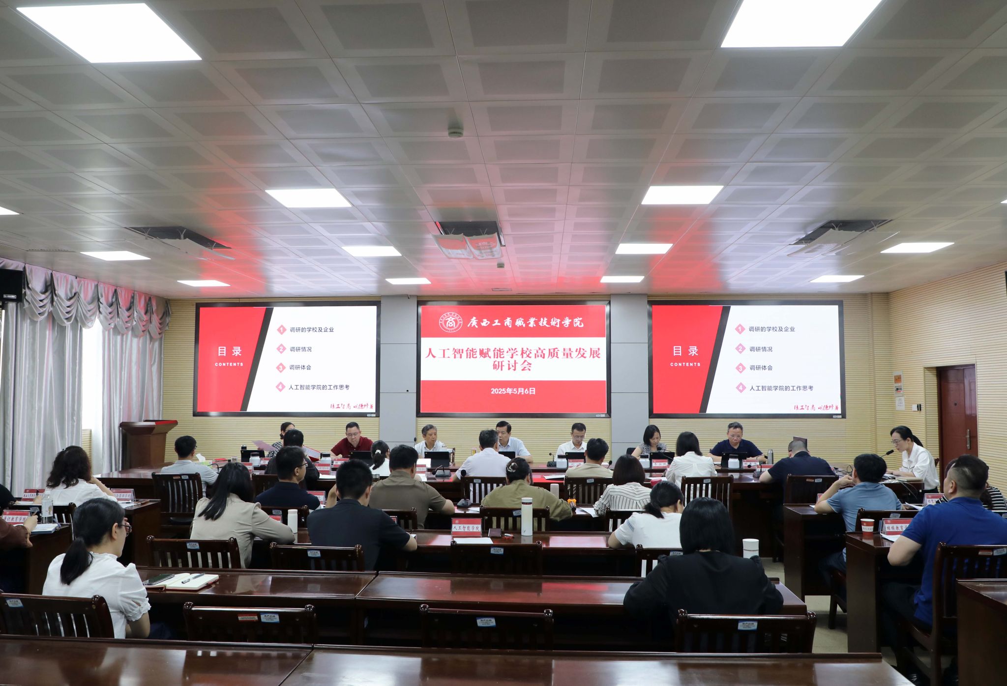 為深入貫徹國家“人工智能+”戰(zhàn)略行動(dòng),落實(shí)自治區(qū)關(guān)于大力發(fā)展人工智能產(chǎn)業(yè),推動(dòng)制造業(yè)高端化、智能化、綠色化發(fā)展的重大決策要求,探索人工智能賦能學(xué)校高質(zhì)量發(fā)展的建設(shè)路徑,2025年5月6日,我校召開人工智能賦能學(xué)校高質(zhì)量發(fā)展研討會(huì)。學(xué)校領(lǐng)導(dǎo)班子成員,各部門、各單位主要負(fù)責(zé)人,各二級(jí)學(xué)院分管教學(xué)負(fù)責(zé)人參加會(huì)議。會(huì)議由副校長鄭華主持。