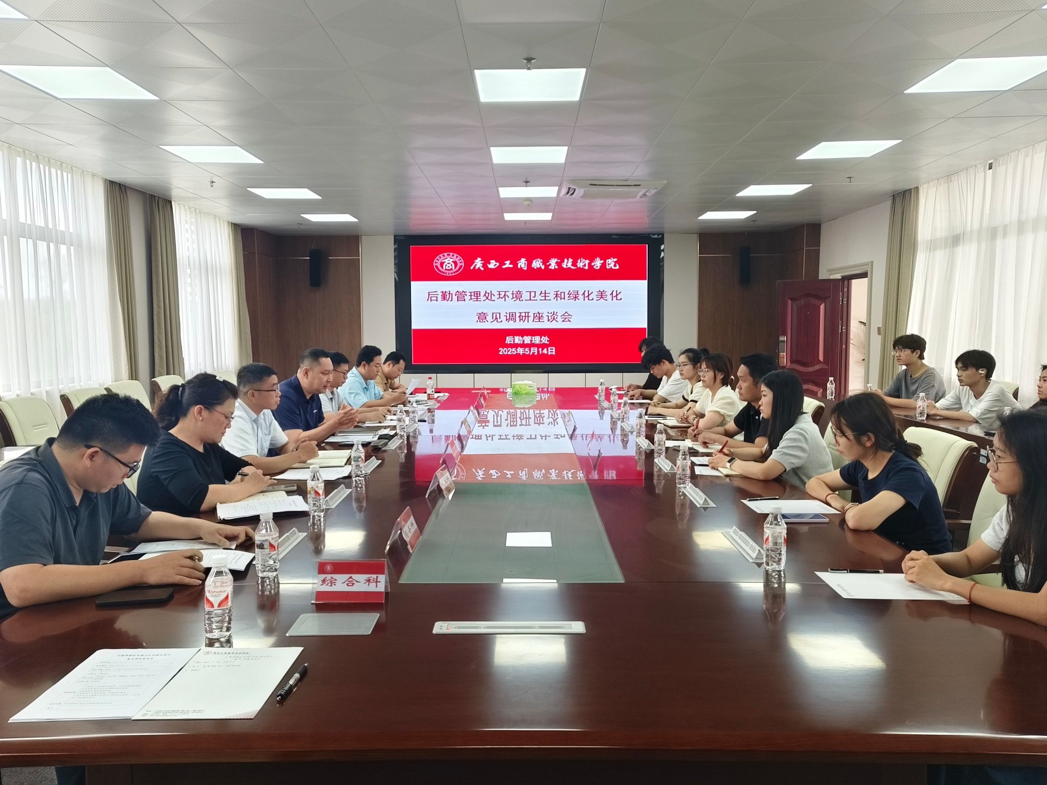 5月14日,學(xué)校副校長(zhǎng)陳寧春帶領(lǐng)后勤管理處處長(zhǎng)林昆榮、后勤管理處副處長(zhǎng)陸升將、保衛(wèi)處分管工作負(fù)責(zé)人譚爵璽及相關(guān)科室人員在武鳴校區(qū)東區(qū)開(kāi)展了環(huán)境衛(wèi)生和綠化美化意見(jiàn)調(diào)研工作,財(cái)金學(xué)院和糧油與管理學(xué)院的師生代表參加了調(diào)研座談會(huì)。