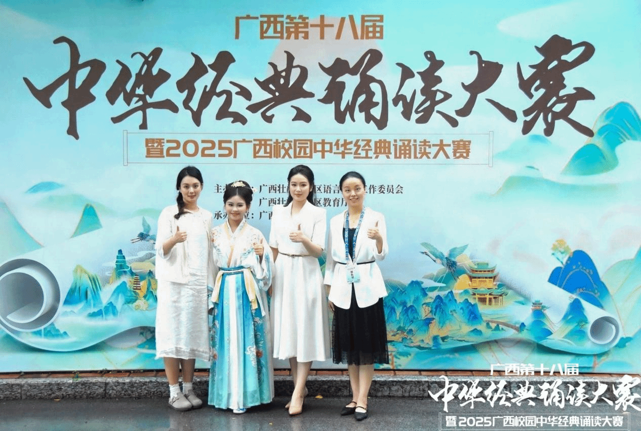 6月14日——16日,由自治區(qū)教育廳、自治區(qū)語(yǔ)委主辦的"廣西第十八屆中華經(jīng)典誦讀大賽暨2025廣西校園中華經(jīng)典誦讀大賽"現(xiàn)場(chǎng)總決賽在廣西民族大學(xué)思源湖校區(qū)圓滿落幕。我校精心組織師生團(tuán)隊(duì)參賽,通過(guò)精彩演繹展現(xiàn)中華經(jīng)典的文化魅力,獲得評(píng)委與觀眾高度贊譽(yù)。
