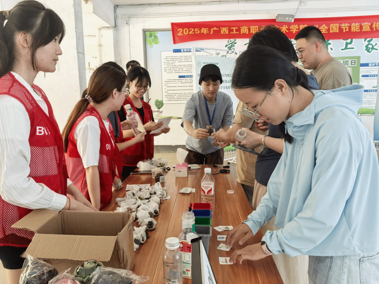 6月25日是全國低碳日,學(xué)校在鵬飛校區(qū)舉行以“碳路先鋒、綠動未來”為主題的科普宣傳活動?;顒右怨?jié)能降碳和垃圾分類等為重點宣傳領(lǐng)域,現(xiàn)場設(shè)置宣傳展臺、橫幅、展板、互動游戲區(qū)。學(xué)校后勤管理處向師生發(fā)放宣傳彩頁、節(jié)能資料,組織師生開展廢棄塑料瓶換綠植、垃圾分類小游戲、爭當節(jié)能宣傳大使等豐富多樣的互動游戲,向全校師生發(fā)出“碳路先鋒、綠動未來”的理念,倡導(dǎo)全民積極踐行“簡約適度、綠色低碳、文明健康”的生活方式?;顒悠陂g,學(xué)校各部門、各單位組織還師生集中收看全國公共機構(gòu)節(jié)能宣傳周啟動儀式及專題宣傳片《守護》。