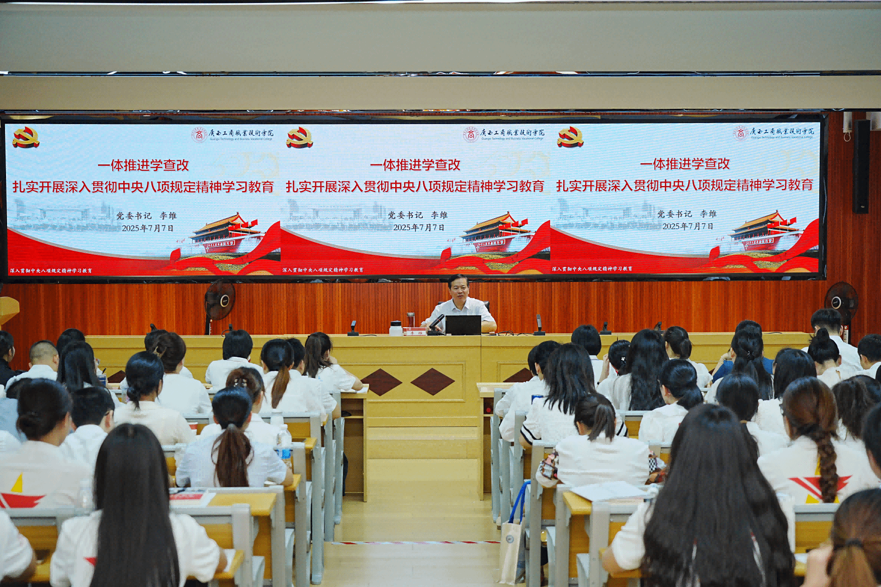 李維從習(xí)近平總書記關(guān)于加強黨的作風(fēng)建設(shè)的重要論述、中央八項規(guī)定及其實施細則精神等方面進行講授,結(jié)合高校立德樹人根本任務(wù)和青年群體的成長特點,逐條解讀規(guī)定內(nèi)容。他指出,習(xí)近平總書記關(guān)于加強黨的作風(fēng)建設(shè)的重要論述為新時代推進作風(fēng)建設(shè)提供了根本遵循,青年教師、學(xué)生必須深刻領(lǐng)會其核心要義,時刻保持思想上的清醒和政治上的堅定。他強調(diào),中央八項規(guī)定是長期有效的鐵規(guī)矩、硬杠杠,必須常抓不懈、久久為功。要重點聚焦糾治形式主義、官僚主義,厲行勤儉節(jié)約等關(guān)鍵領(lǐng)域。教師和學(xué)員們不僅要“知其然”,更要“知其所以然”,將中央八項規(guī)定精神轉(zhuǎn)化為日常行為準則,將學(xué)習(xí)教育成果轉(zhuǎn)化為“馬上就辦、真抓實干”的自覺行動。