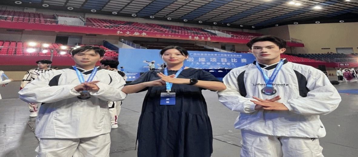 啦啦操項(xiàng)目同樣精彩紛呈,雙人街舞組合以高難度動(dòng)作贏得銀牌,集體街舞隊(duì)獲得第六名。教練袁曉紅、尹成功、任鵬的創(chuàng)意編排,讓活力與藝術(shù)在賽場(chǎng)綻放,共收獲2項(xiàng)榮譽(yù)。