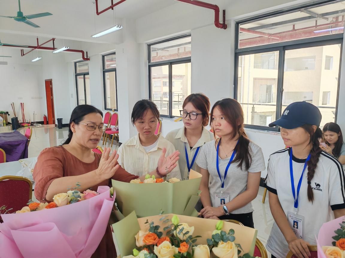她的課堂往往是“沉浸式”的:她不愛念PPT,更愿把教室變成“職場(chǎng)模擬場(chǎng)”。教餐飲服務(wù),就比賽擺臺(tái)速度與規(guī)范;講前廳接待,就設(shè)置“證件丟失”“預(yù)訂出錯(cuò)”等難題,讓學(xué)生分組找解決方案。她常常在學(xué)生操作時(shí)突然提問:“左撇子客人該怎么調(diào)整刀叉?”以此引導(dǎo)學(xué)生跳出定式,站在客人角度思考。