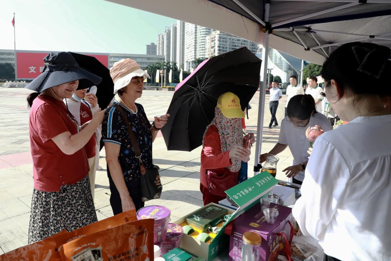 啟動(dòng)儀式結(jié)束后,與會(huì)領(lǐng)導(dǎo)嘉賓到我校展區(qū)參觀,詳細(xì)了解我校展出的特色產(chǎn)品并進(jìn)行品嘗,對我校展區(qū)的各項(xiàng)內(nèi)容給予了高度評價(jià)。此外,我校展區(qū)也獲得了現(xiàn)場眾多市民的青睞,紛紛前來參觀和品嘗,得到了大家的一致好評。