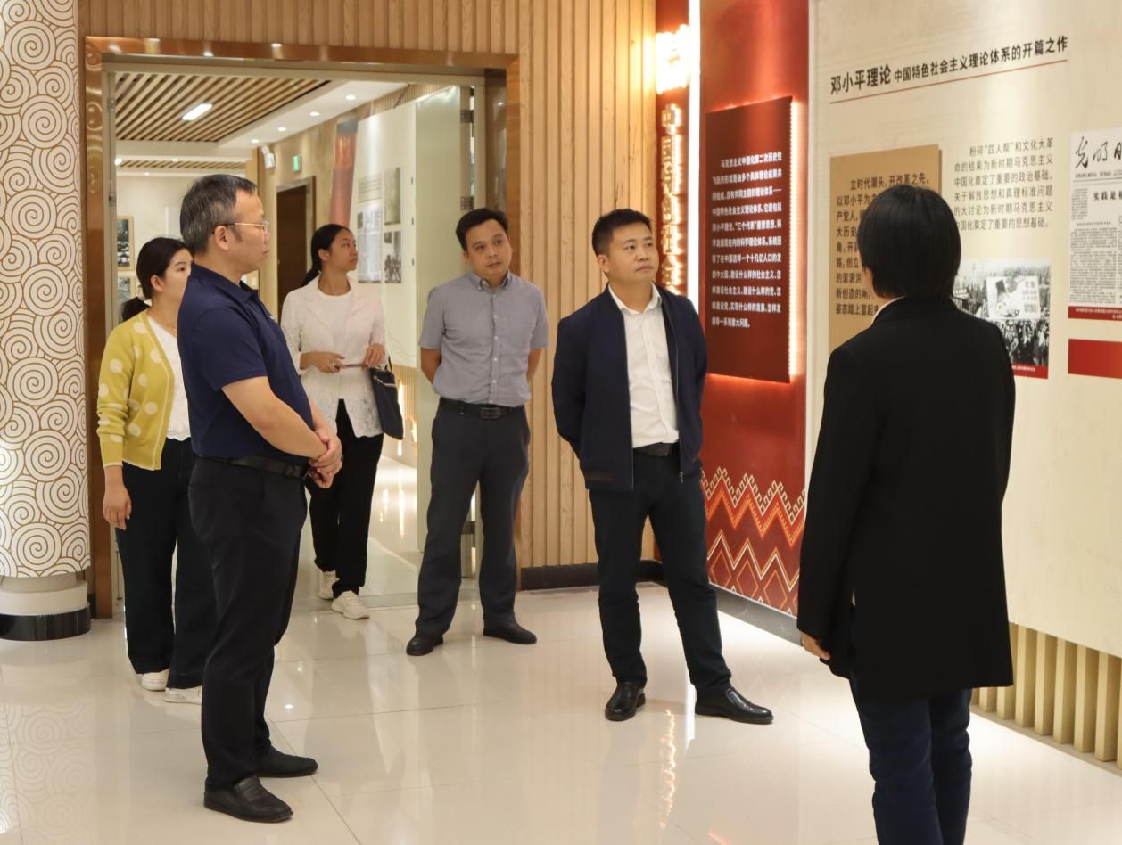 在闕勇平副校長的帶領下,梁杰副校長一行參觀了我校習近平新時代中國特色社會主義思想教育基地,實地了解了我校思想政治教育基地的建設和運行情況。