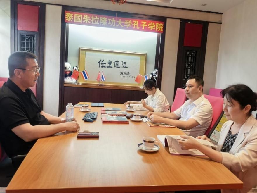 代表團(tuán)與泰國朱拉隆功大學(xué)孔子學(xué)院韓圣龍院長交流