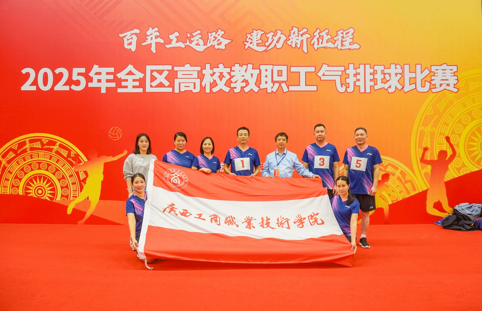 2025年11月7日—9日,由自治區(qū)教育工會主辦的“百年工運(yùn)路 建功新征程”2025年全區(qū)高校教職工氣排球比賽,在廣西體育中心綜合訓(xùn)練館隆重舉行,全區(qū)52所高校的113支隊伍,約1100名教職工參賽。學(xué)校校長劉進(jìn),學(xué)校黨委副書記、紀(jì)委書記韋云鳳和副校長陳寧春參加比賽,學(xué)校黨委副書記、工會主席安仲文擔(dān)任領(lǐng)隊和教練。