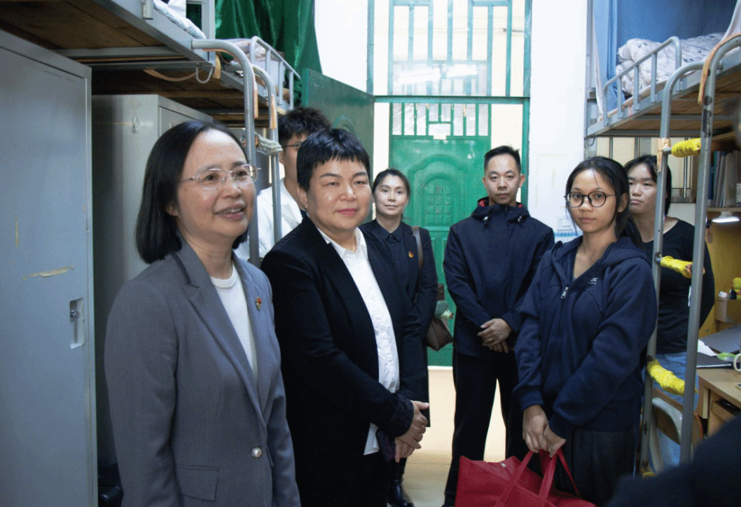 為全面落實立德樹人根本任務(wù),扎實推進(jìn)領(lǐng)導(dǎo)干部深入基層聯(lián)系學(xué)生工作,2025年11月26日下午,學(xué)校黨委副書記、紀(jì)委書記韋云鳳來到中堯校區(qū),深入“一站式”學(xué)生社區(qū),走訪學(xué)生宿舍,與同學(xué)們進(jìn)行了面對面的交流與慰問。黨委學(xué)生工作部、會計學(xué)院相關(guān)負(fù)責(zé)人一同參加活動。