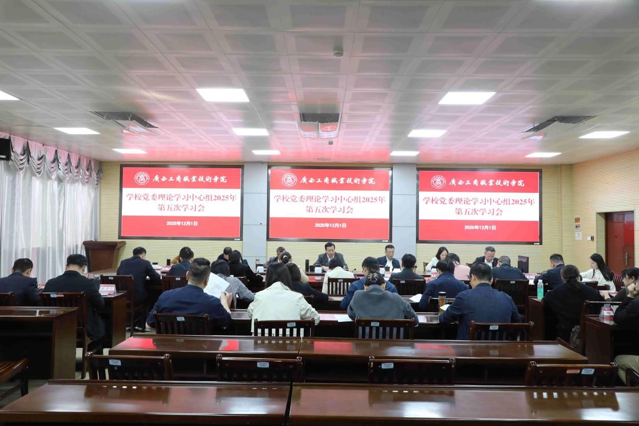 12月1日,學校在鵬飛校區(qū)召開黨委理論學習中心組2025年第五次學習會,重點圍繞黨的二十屆四中全會精神、中共中央關(guān)于制定國民經(jīng)濟和社會發(fā)展第十五個五年規(guī)劃的建議等內(nèi)容開展學習研討。學習會由學校黨委書記李維主持。學校黨委委員,學校各部門、各單位主要負責人,各黨總支、各直屬黨支部書記(負責人),工會、團委負責人參加會議。