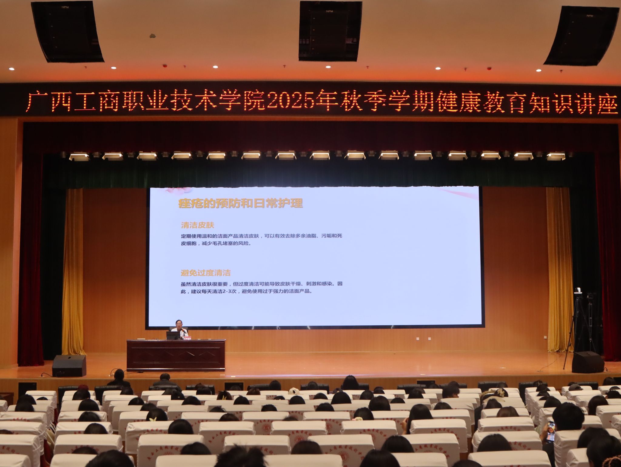 為實(shí)施健康中國(guó)戰(zhàn)略,強(qiáng)化學(xué)生健康素養(yǎng)培育,引導(dǎo)師生樹立科學(xué)健康觀念,12月16日,我校在武鳴校區(qū)學(xué)術(shù)活動(dòng)中心開展2025年秋季學(xué)期健康教育知識(shí)講座。本次講座特邀南寧市武鳴區(qū)婦幼保健院皮膚科主任黃麗芳、產(chǎn)科副主任醫(yī)師覃柳芳授課,財(cái)金學(xué)院、糧油與管理學(xué)院、經(jīng)貿(mào)與康旅學(xué)院、會(huì)計(jì)學(xué)院師生代表參加了此次講座。