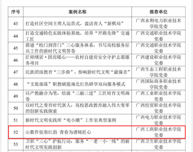此次案例入選,是自治區(qū)黨委教育工委對我校新時代文明實踐工作成效的充分認(rèn)可,也是對學(xué)校思政教育創(chuàng)新探索的有力激勵。下一步,學(xué)校將以此為契機,持續(xù)深化文明實踐陣地建設(shè),不斷豐富“山歌 +”育人內(nèi)涵與形式,著力打造可復(fù)制、可借鑒、可推廣的高校思政教育創(chuàng)新示范樣本,為培養(yǎng)擔(dān)當(dāng)民族復(fù)興大任的時代新人、服務(wù)地方經(jīng)濟社會高質(zhì)量發(fā)展貢獻更大力量。