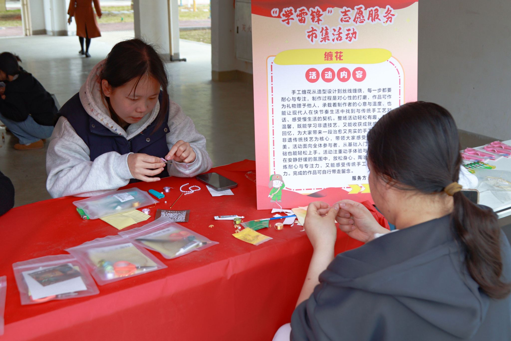 在“精神文化弘揚專區(qū)”,思想的火花在互動中迸發(fā)。會計學院組織的“雷鋒精神薪火傳,實干為學正當時”雷鋒志愿答題活動,以趣味快問快答形式普及雷鋒精神相關知識,加深師生對雷鋒事跡與精神內(nèi)涵的理解,厚植奉獻擔當意識。財金學院開展的“‘串’起溫暖,踐行雷鋒精神”DIY公益制作活動,為同學們免費提供各類珠子、繩線、配飾等材料,大家可發(fā)揮創(chuàng)意親手制作手串或手機鏈,活動還設置愛心捐贈環(huán)節(jié),參與者可自愿為公益項目捐款,讓小小的手作承載大愛。青年志愿者協(xié)會則開展“微光匯聚,志愿成炬”志愿風采線下展示活動,通過展示志愿服務活動,匯聚青春力量,彰顯責任擔當。