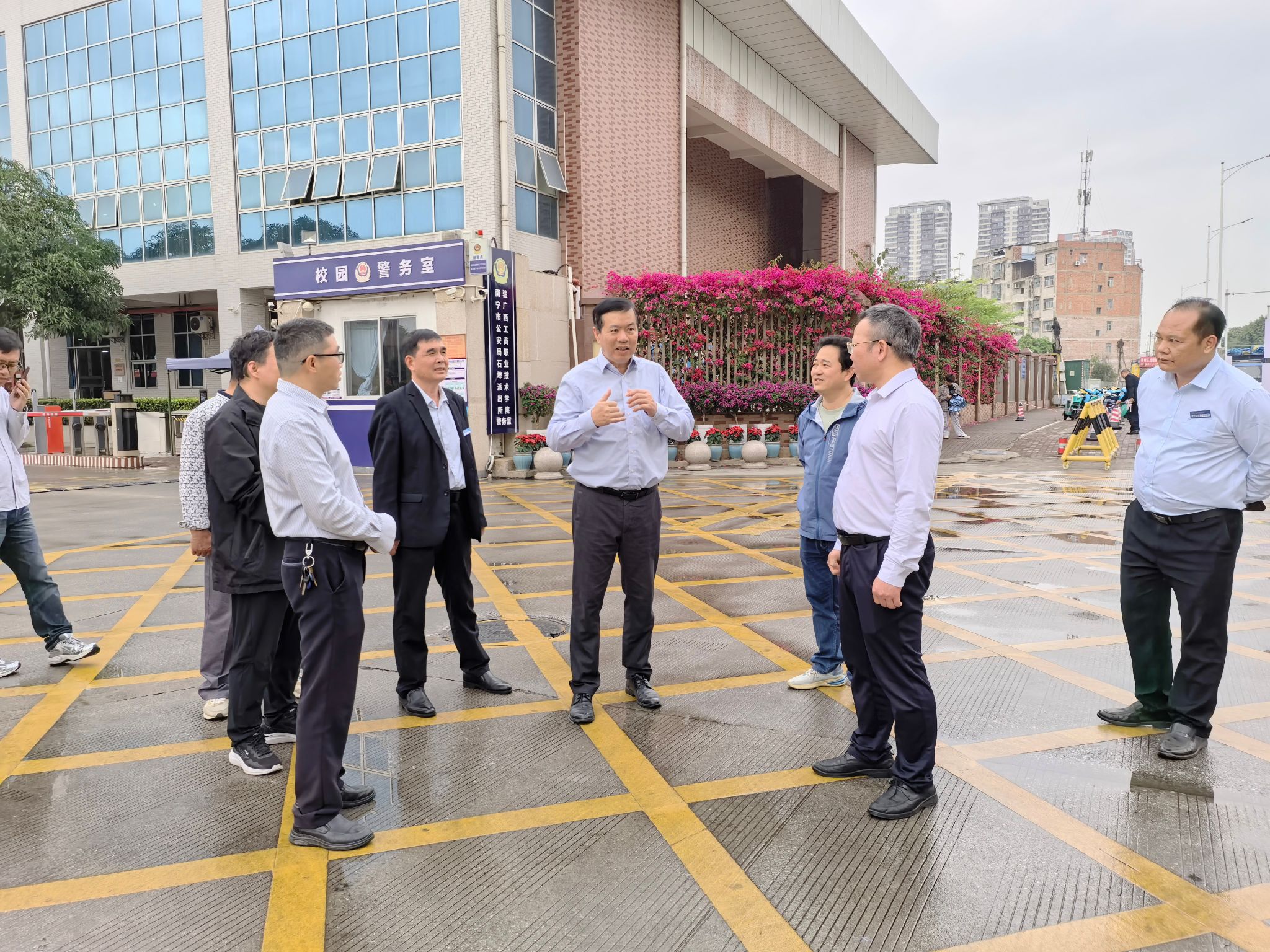 在校門及停車場區(qū)域,李維現(xiàn)場查看了車輛通行與停放情況。他強調,要科學規(guī)劃停車位,合理利用空間,緩解停車壓力;同時要加強交通疏導,確保上下課高峰期校園內(nèi)道路通暢有序。針對臨時送貨等外來車輛,要嚴格落實“對接登記、限時離?!钡裙芾泶胧?,確保入校車輛和人員信息可溯、軌跡可控。