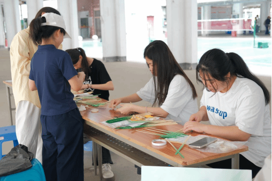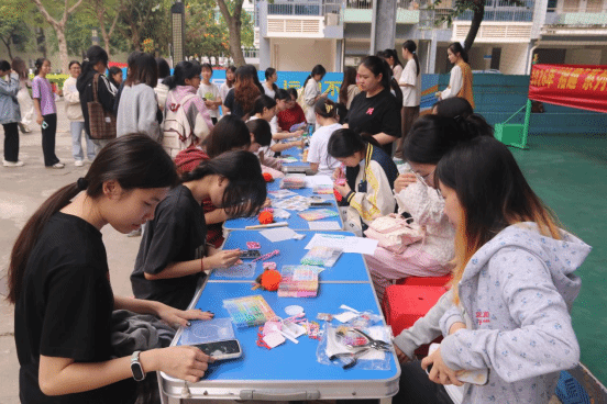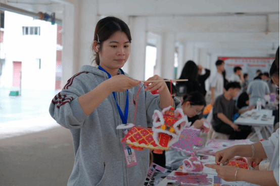 活動(dòng)開展了非遺竹編制作、漆扇繪制、香囊制作、手繪團(tuán)扇、折扇繪畫、點(diǎn)茶活動(dòng)、壯鄉(xiāng)非遺繡球手作等活動(dòng)。隨著下課鈴聲響起,三個(gè)校區(qū)的活動(dòng)現(xiàn)場(chǎng)逐漸熱鬧起來。武鳴校區(qū)“一站式”學(xué)生社區(qū)、A7、A11架空層,鵬飛校區(qū)3棟架空層,中堯校區(qū)風(fēng)雨球場(chǎng)內(nèi)人頭攢動(dòng),由各學(xué)生社團(tuán)精心布置的體驗(yàn)攤位錯(cuò)落有致,志愿者們熱情洋溢。各活動(dòng)得到了廣大師生的積極響應(yīng)與熱情參與。在活動(dòng)開展期間,各板塊活動(dòng)現(xiàn)場(chǎng)始終保持著較高的參與度,部分熱門項(xiàng)目前排起了長(zhǎng)隊(duì),同學(xué)們?cè)趧?dòng)手實(shí)踐中感受傳統(tǒng)手工藝的魅力與趣味。