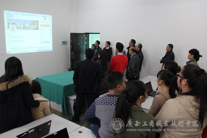 參加揭牌儀式的師生還一同參觀了易班發(fā)展中心的設(shè)施,黃嘉琦老師利用投影儀,現(xiàn)場介紹了易班的運(yùn)用方式,展出了易班APP的使用步驟。覃書記、蒙副書記現(xiàn)場登入賬號體驗(yàn)易班的使用方式。