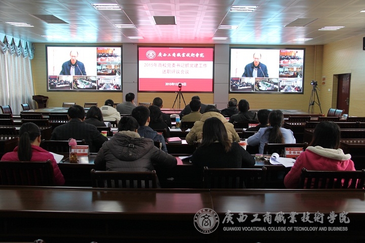 按照上級(jí)部門的部署,2015年12月20-21日,我院派出了學(xué)院領(lǐng)導(dǎo)、黨務(wù)部門負(fù)責(zé)人及教職工黨員代表等20人作為評(píng)議人員在分會(huì)場(chǎng)我院本部教學(xué)樓2119視頻會(huì)議室參加我區(qū)2015年高校黨委書記抓黨建工作述職評(píng)議會(huì)議,對(duì)全區(qū)46所副廳級(jí)以上建制高校的黨委書記述職進(jìn)行評(píng)分。