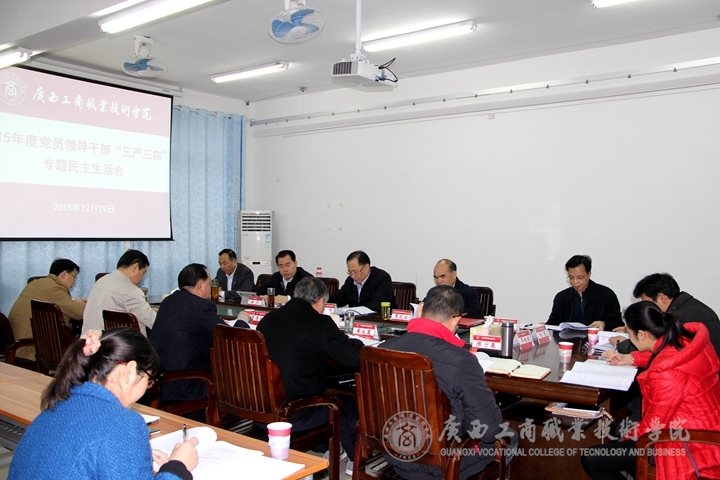 2015年12月29日,按照中央和自治區(qū)黨委關(guān)于“三嚴(yán)三實”專題教育的部署和要求,我院2015年度黨員領(lǐng)導(dǎo)干部“三嚴(yán)三實”專題民主生活會在學(xué)院本部教學(xué)樓2109會議室召開。自治區(qū)糧食局副局長林愈溪同志、自治區(qū)糧食局人事處處長韋尚英同志到會指導(dǎo)。學(xué)院領(lǐng)導(dǎo)出席會議,黨委委員中的部門領(lǐng)導(dǎo)列席會議。會議由學(xué)院黨委書記覃武云主持。