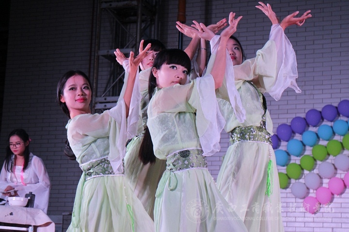 首先由精彩的舞獅子表演為晚會拉開了帷幕,主持人介紹了出席晚會的老師。接著,演奏、合唱、舞蹈、瑜伽、走秀、武術(shù)等12個表演節(jié)目輪番上陣。音樂協(xié)會樂隊(duì)演奏的《Pieces+不能說的秘密》動聽的歌喉令人陶醉;街舞社表演的節(jié)目《T.O.KING SHOW》,勁爆動感十足,激情洋溢,點(diǎn)燃了晚會火熱的氣氛;書畫協(xié)會帶來的《蝶飛花舞》中,身著古色古香旗袍的女子,唯美絢麗,隨著悠揚(yáng)的樂聲翩翩起舞,現(xiàn)場隨即揮筆寫下的毛筆字帖,帶現(xiàn)場觀眾領(lǐng)略了一番中國傳統(tǒng)文化獨(dú)特的魅力。輪滑協(xié)會上演了舞蹈《大王叫我來尋山》,可愛搞笑的動作贏得了現(xiàn)場觀眾的喝彩。在節(jié)目期間,廖顯圖書記、陶曉斌老師為2014-2015年度社團(tuán)文化藝術(shù)節(jié)舉辦的競賽中獲獎的團(tuán)體與個人進(jìn)行頒獎。社團(tuán)文化藝術(shù)節(jié)閉幕式晚會節(jié)目以社團(tuán)文化為主題,為我院各學(xué)生社團(tuán)提供了一個集中展現(xiàn)社團(tuán)風(fēng)采的舞臺。