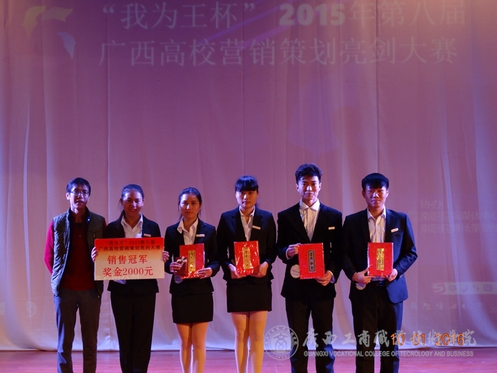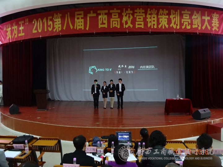 2016年1月10日13時(shí),由中國(guó)市場(chǎng)營(yíng)銷課程標(biāo)準(zhǔn)開(kāi)發(fā)中心廣西分中心主辦,廣西南寧奧理可贏企業(yè)管理咨詢有限公司承辦、廣西太常服飾有限公司贊助的“我為王”2015第八屆高校營(yíng)銷策劃亮劍總決賽在廣西財(cái)經(jīng)學(xué)院舉行。我院共有4支隊(duì)伍在兩個(gè)多月的不斷奮戰(zhàn)中,經(jīng)過(guò)層層地選拔,在廣西區(qū)一百多支參賽隊(duì)伍中脫穎而出,并進(jìn)入到了總決賽環(huán)節(jié)。這是該賽舉辦八屆以來(lái),廣商院首次擁有4支隊(duì)伍進(jìn)入總決賽并奪得一系列大獎(jiǎng)的重大突破。