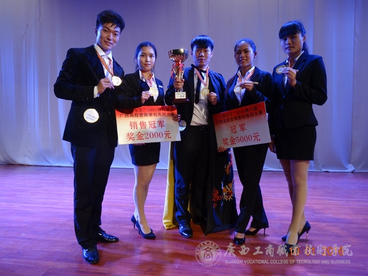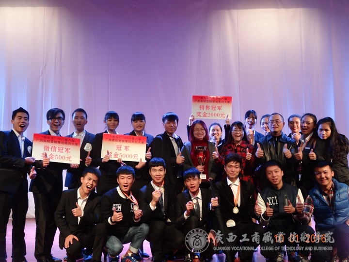由營(yíng)銷1434班賀炳瑋、何海秋、溫婷宏、李雅倩及營(yíng)策1432班劉行杰組成的“內(nèi)在美”團(tuán)隊(duì)從初賽開(kāi)始就以廣西高校銷量第一、廣西高校總成績(jī)第一的優(yōu)異成績(jī)進(jìn)入決賽,經(jīng)過(guò)團(tuán)隊(duì)選手一番精彩的PPT策劃方案演講,一舉成功斬獲總決賽冠軍、銷售冠軍、最佳視頻獎(jiǎng)的好成績(jī)!由營(yíng)銷1434班孔倩姿、余端端、張龍泉、梁進(jìn)康、陳怡沖五位同學(xué)組成的“KING”團(tuán)隊(duì)也以優(yōu)異的成績(jī)一舉奪下總決賽的季軍。另外,由營(yíng)銷1432班蔡佳斌、營(yíng)銷1433班陳智慧、營(yíng)銷1431班石超蘭、營(yíng)策1503班莫小凡、營(yíng)策1501班龐廣玉組成的“多米諾”團(tuán)隊(duì)獲得微信冠軍、優(yōu)秀獎(jiǎng)!由營(yíng)策1433班黎霞、營(yíng)策1503班謝坤宏、馬彩彬、許本海組成的“宏彬?!眻F(tuán)隊(duì)獲得優(yōu)秀獎(jiǎng)!同時(shí),李紅梅教授與張煌強(qiáng)老師都獲得了優(yōu)秀指導(dǎo)教師獎(jiǎng)!