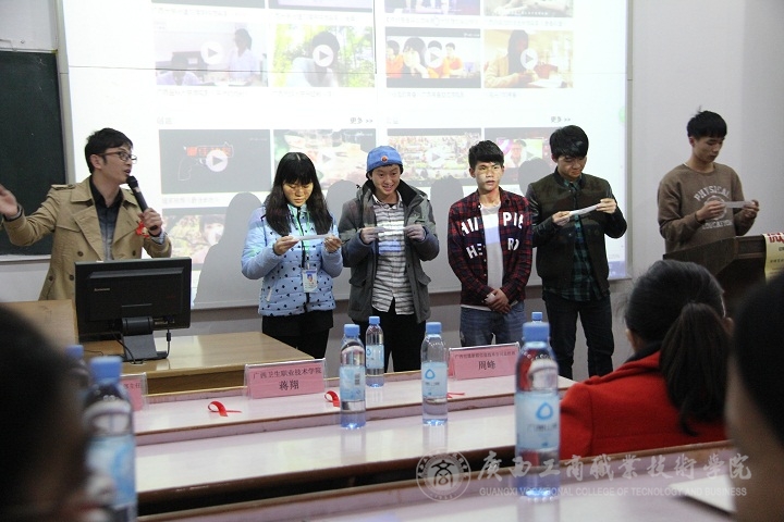 2015年1月9日下午,我院黨委宣傳部粟蘭惠、李蓉榮、曾小峰、梁禮娜等四名同學(xué)代表,參加了在廣西中醫(yī)藥大學(xué)召開的廣西高校“防艾”大型系列宣傳活動——微電影創(chuàng)作培訓(xùn)班及志愿者工作會議。參加培訓(xùn)班的還有來自廣西各個高校的老師和同學(xué)。