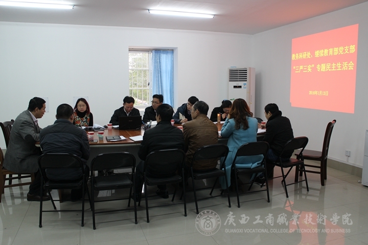 根據(jù)上級及學(xué)院黨委安排,2016年1月13日下午,教務(wù)科研處黨支部和繼續(xù)教育黨支部在認(rèn)真開展會(huì)前學(xué)習(xí),撰寫發(fā)言提綱的基礎(chǔ)上聯(lián)合召開了“三嚴(yán)三實(shí)”專題民主生活會(huì)。會(huì)議由教務(wù)科研處副處長闕勇平教授主持,學(xué)院李維副院長參加了會(huì)議。教務(wù)科研處黨支部和繼續(xù)教育黨支部除下鄉(xiāng)和請假人員外,共13名黨員參加了民主生活會(huì)。