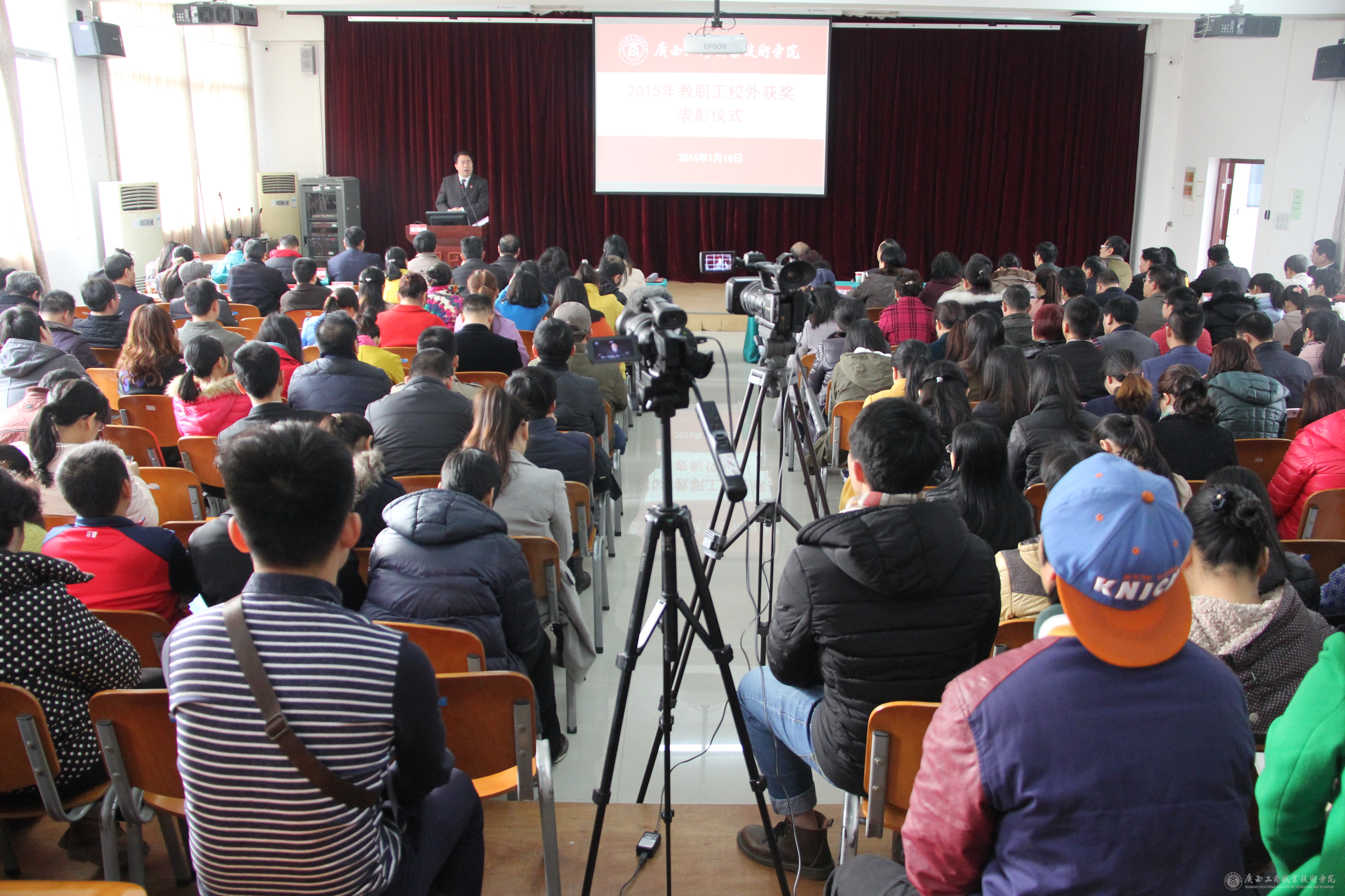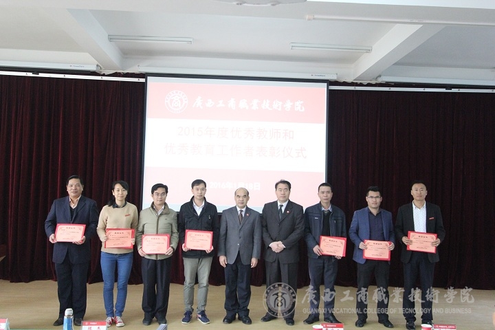 隨后,由學(xué)院副院長李仕欽作2015年度優(yōu)秀教師及工作者表彰決定報告。學(xué)院黨委書記覃武云和學(xué)院院長為受表彰的教師及教育工作者頒發(fā)證書。