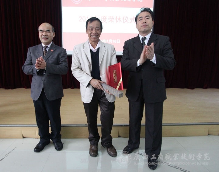 2015年度榮休儀式由黨委副書記蒙啟成主持。儀式正式開始前,與會人員集體觀看了由學(xué)院黨委宣傳部新聞中心制作的7位退休教師的榮休榜短片,回顧了老教師們的光輝歲月。學(xué)院黨委書記覃武云和學(xué)院院長陳杰為退休教職工頒發(fā)了證書以及退休紀(jì)念品,并合影留念。接著,陳杰院長發(fā)言講話,他向大家說明了榮休儀式舉辦的意義,介紹了2015年度退休教師在我院的入職及工作情況,并向老教師們?yōu)閷W(xué)院默默無聞、孜孜不倦的付出表示衷心的感謝。
