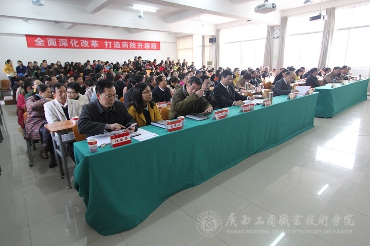 會上,由陳杰院長就學(xué)院建立實施校外獲獎備忘錄制度做政策說明,并作2015年度工作報告。陳杰院長在報告中選取八件大事對2015年學(xué)院各項工作進(jìn)行了總結(jié)。一、從作風(fēng)、組織、措施3個方面總結(jié)了2015年“黨的建設(shè)”;二、教學(xué)水平升級,主要是人才、培養(yǎng)模式、繼教方面的升級;三、管理能力升級,從依法治校、隊伍建設(shè)、數(shù)字化校園等方面進(jìn)行論述;四、服務(wù)環(huán)境升級,從規(guī)范、隊伍、條件三個方面小結(jié)了2015年“三個升級”。五、校園文化的特色文化和系列活動;六、學(xué)生管理;七、招生就業(yè);八、民生建設(shè)。他還講解了寒假工作安排及2016年工作思路。強(qiáng)調(diào)了要強(qiáng)化校外參賽獲獎意識;強(qiáng)化政策方向;加強(qiáng)團(tuán)隊意識等重點內(nèi)容。